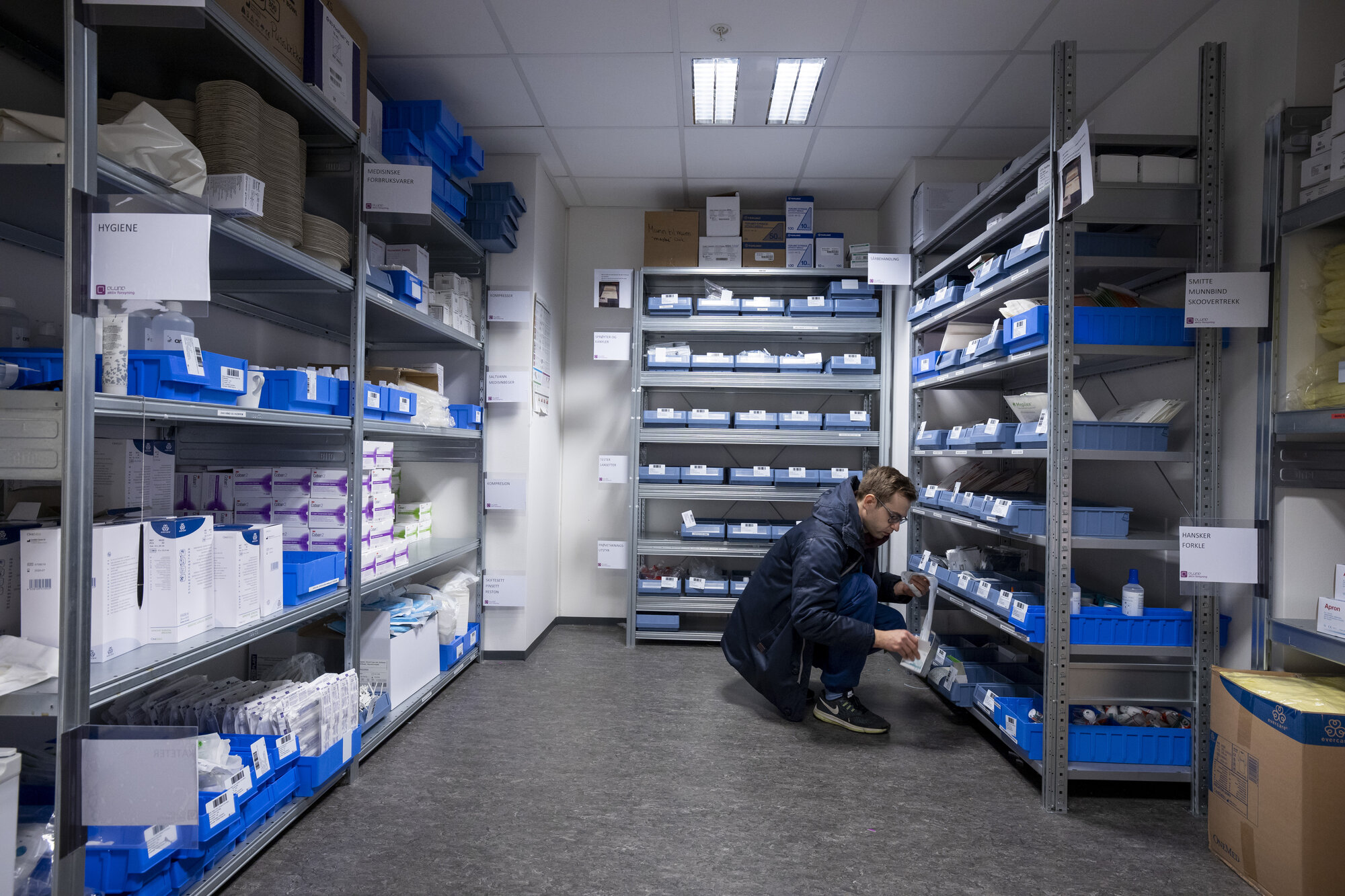 Begrenset med utstyr. Begynte å gå tom allerede før helgen. Gjelder smittefrakker og Antibac