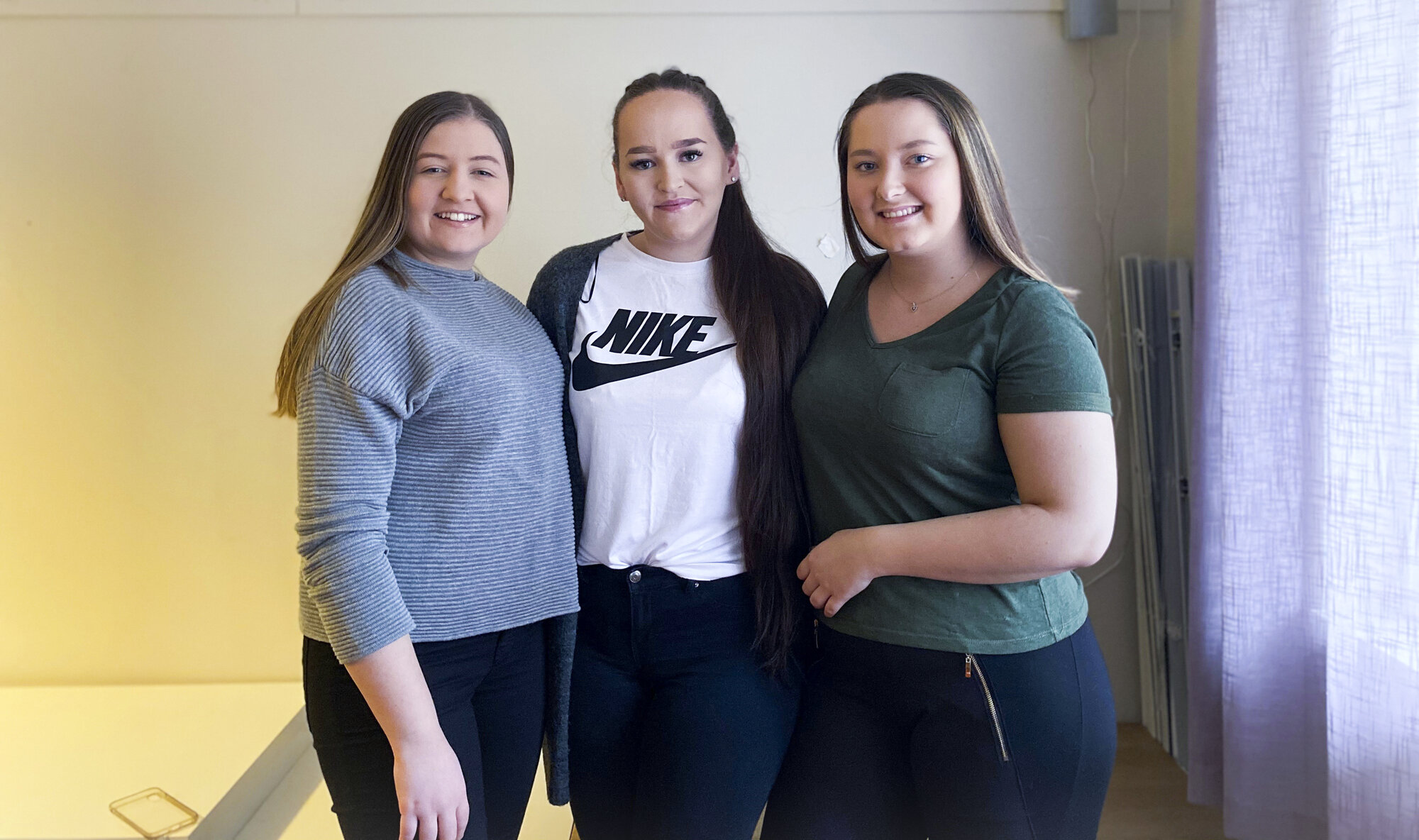 Andrea Nordbø, Rikke Brundtland og Ann-Mari Nødland går andre året på sykepleierstudiet ved Høgskulen på Vestlandet, avdeling Stord.
