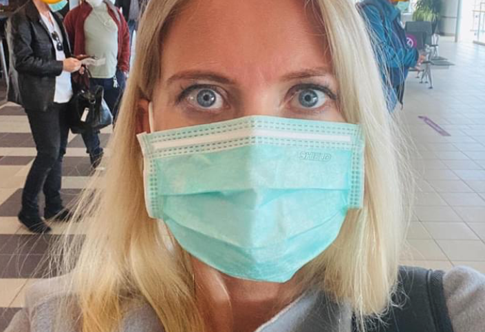 «Påbudt bruk av munnbind SAS … Her går folk rundt på flyplass med munnbind de ser ut til å bruke flere ganger, de spiser og drikker med munnbindet på haka, og de tar på det gjentatte ganger. Feil bruk av munnbind øker risiko for smitte.