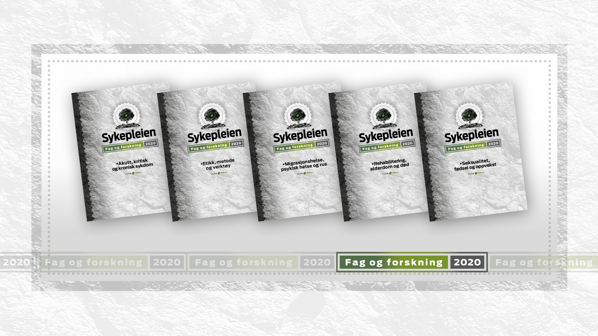 Fag og forskning 2020 Fem forskjellige utgaver med fag- og forskningsartikler som er blitt publisert på sykepleien.no i 2019 og 2020.Her kan du se filmen: «Fag og forskning 2020».#Akutt, kritisk og kronisk sykdomInnhold og PDFNyheter#Etikk, metode og verktøyInnhold og PDFNyheter#Migrasjonshelse, psykisk helse og rusInnhold og PDFNyheter#Rehabilitering, alderdom og dødInnhold og PDFNyheter#Seksualitet, fødsel og oppvekstInnhold og PDFNyheterUtgavene på papirKjøp Sykepleien på papir herNyheter