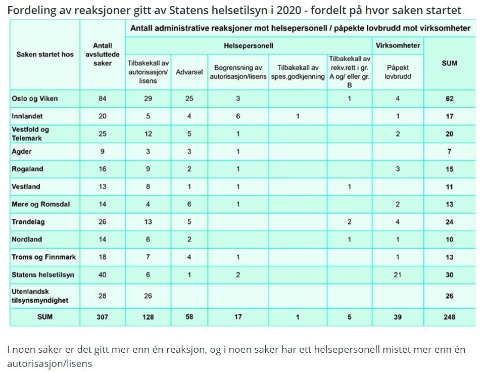 Hvert år publiserer Helsetilsynet tall over hvilke reaksjoner de har gitt i foregående år. I dag kom statistikken for koronaåret 2020.