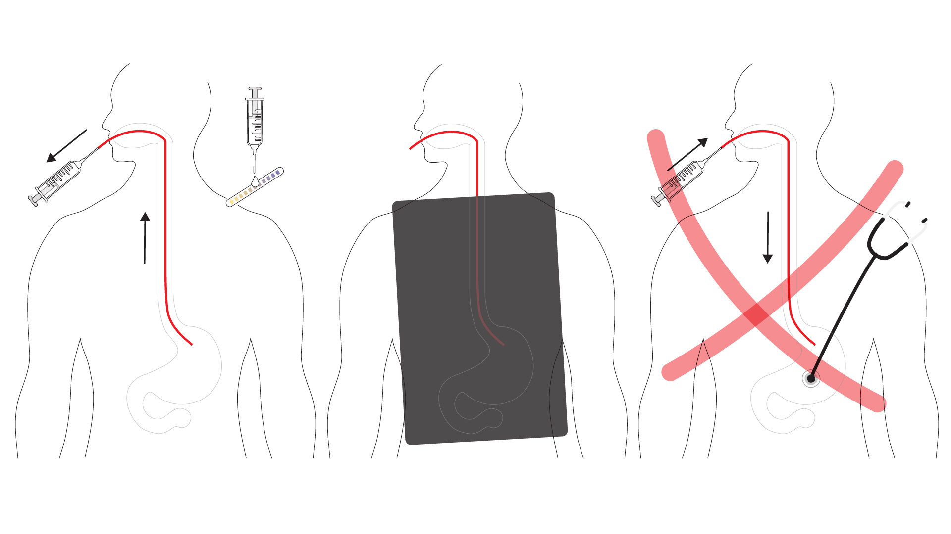 Det innebærer at man blåser luft inn i sonden og lytter etter boblelyder fra magesekken med stetoskop. Men denne metoden er ikke trygg.