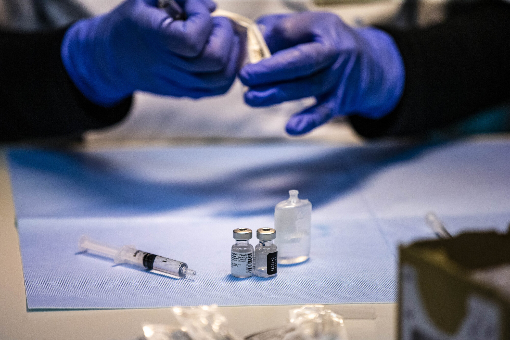 Bildet viser vaksine som blir gjort i stand.
