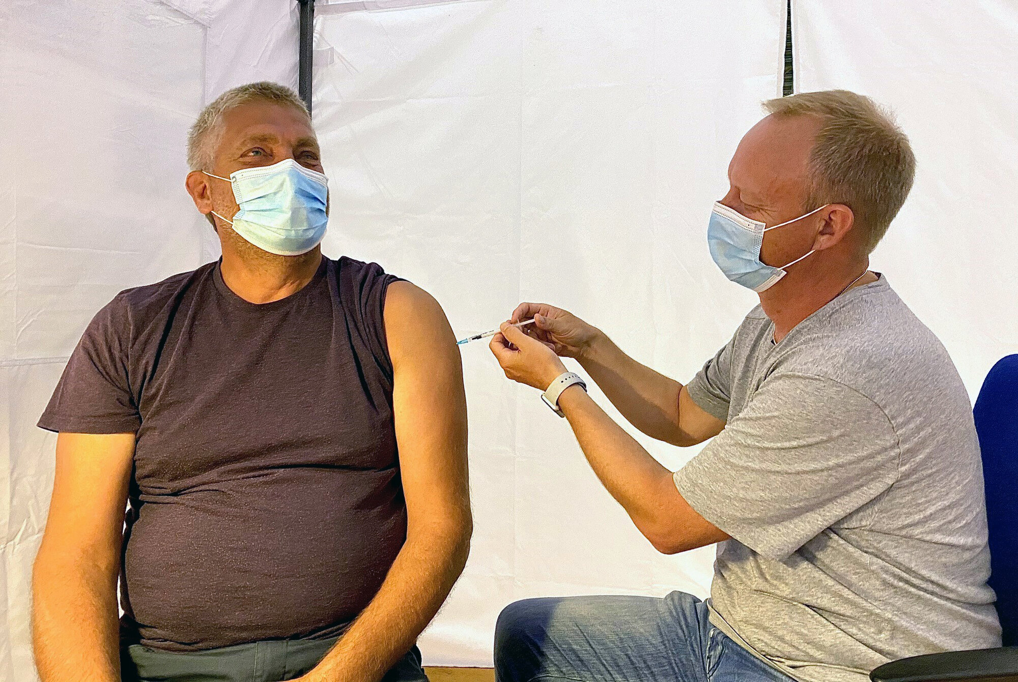 Først var han litt rus­ten. Nå set­ter sy­ke­plei­er Las­se Grøn­dal lett seks vak­si­ner i kvar­te­ret.