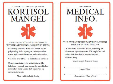 Pasienter med denne sykdommen får utdelt et kortisolmangelkort, som helsepersonell bør ha kjennskap til.