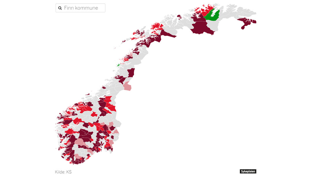 Se en større utgave av kartet her: Aller vanskeligst er det å få tak i sykepleiere.