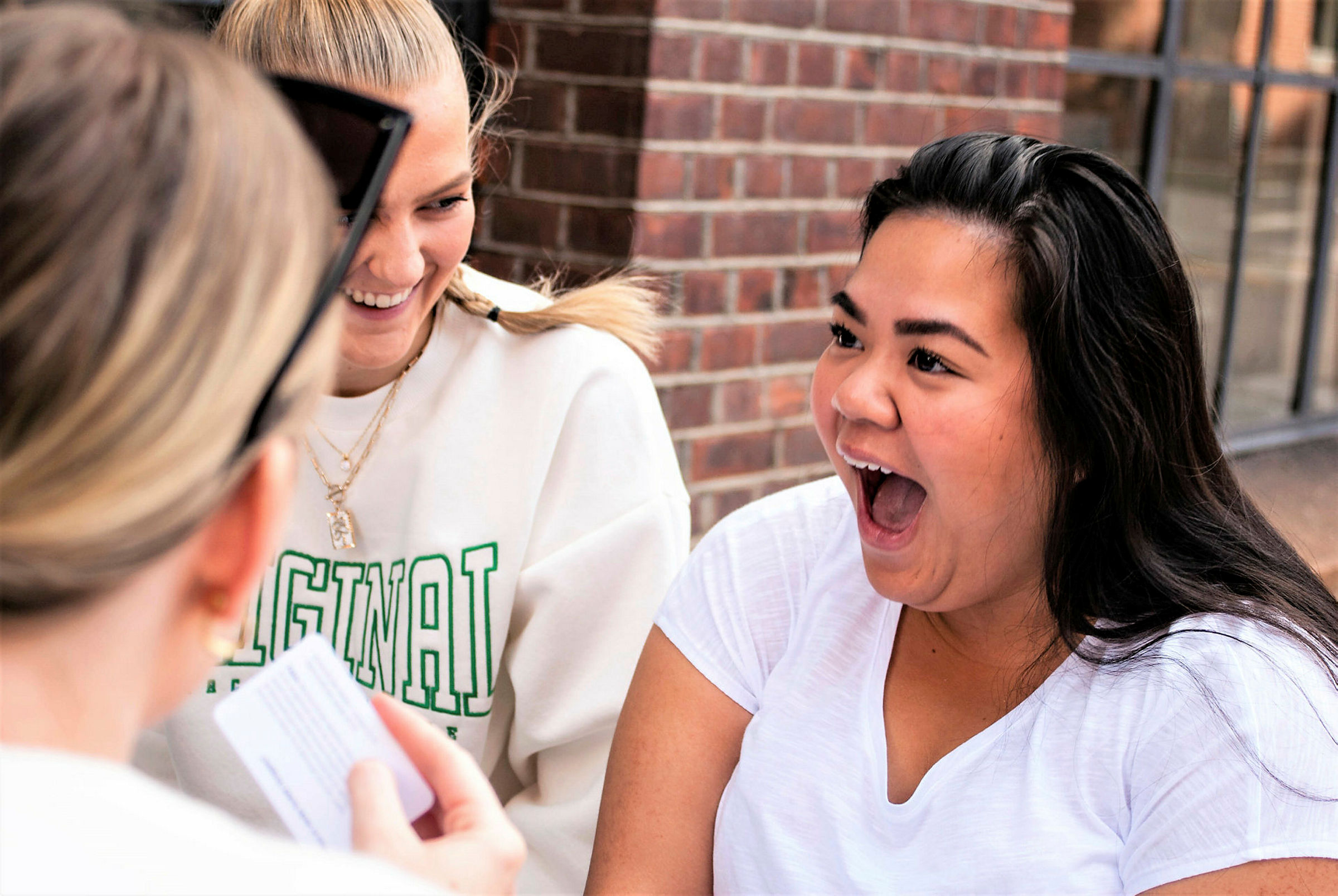 Etter litt fikling med plastemballasje og opplesing av regler, kommer gjengen i gang med selve spillet.