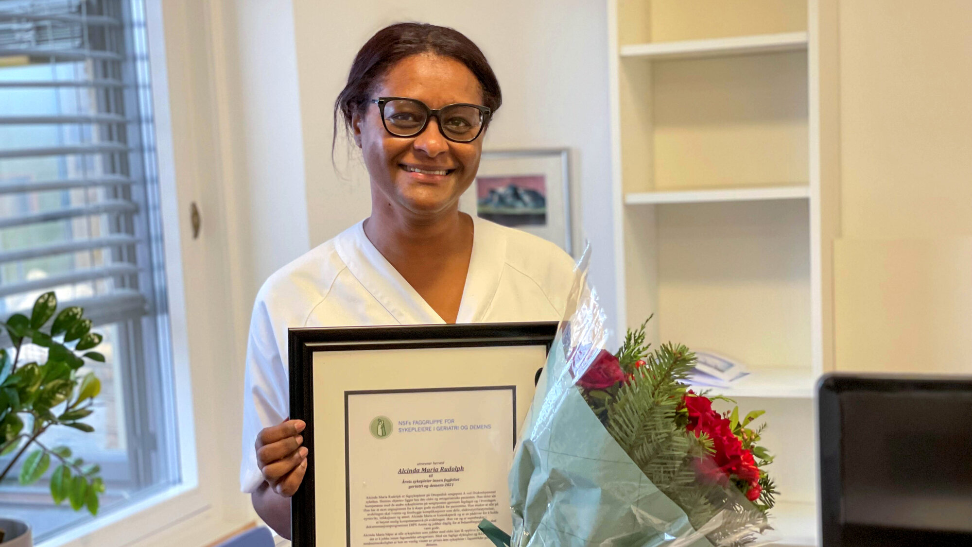 Tirsdag fikk fagsykepleier, Alcinda Maria Rudolph prisen som Årets sykepleier innen fagfeltet geriatri og demens 2021. – Jeg gjør bare jobben min, sier hun.