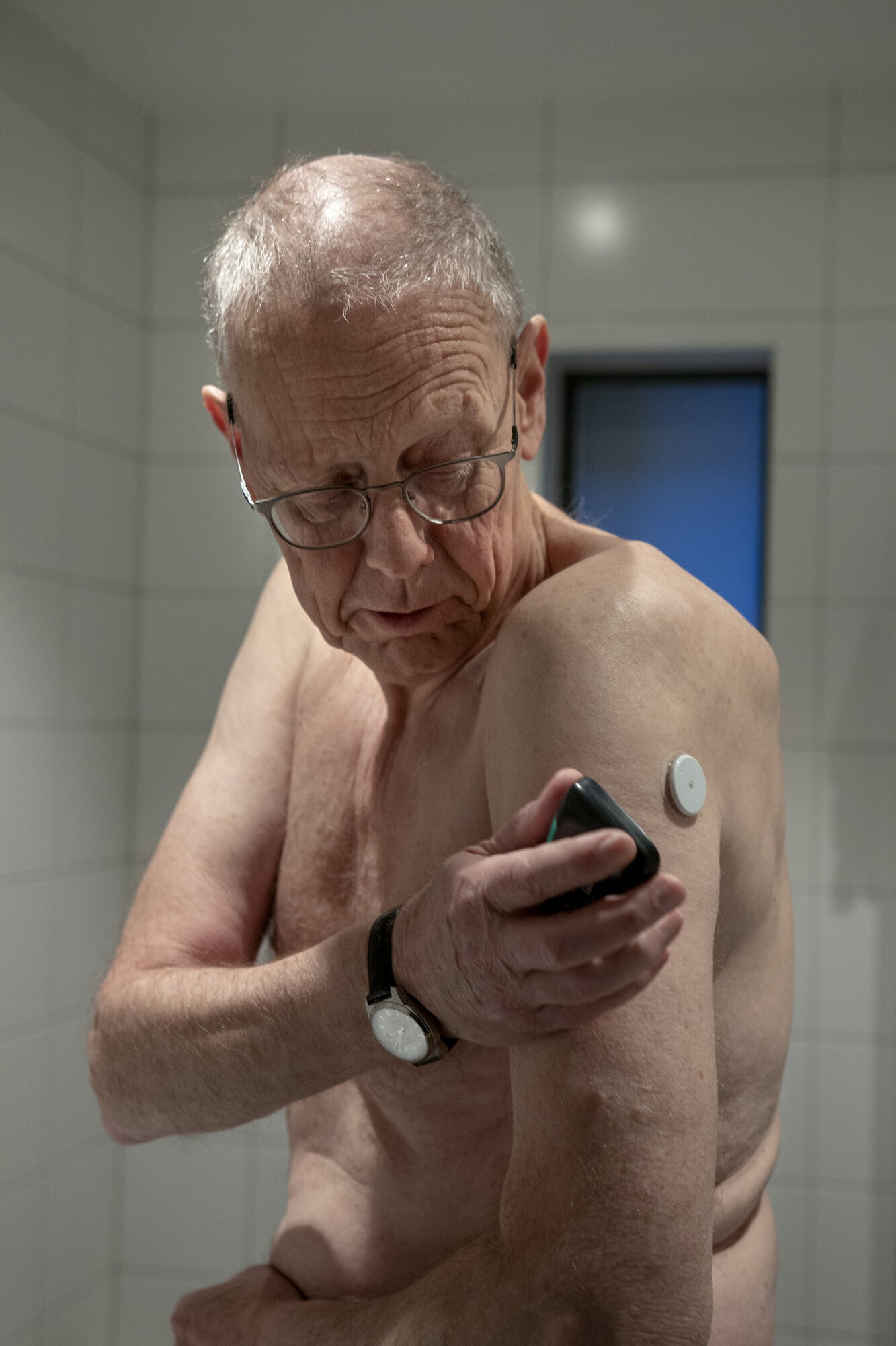Kona hans vet sjelden hvilke tall som står på den håndholdte avleseren som han sveiper over skulderen.