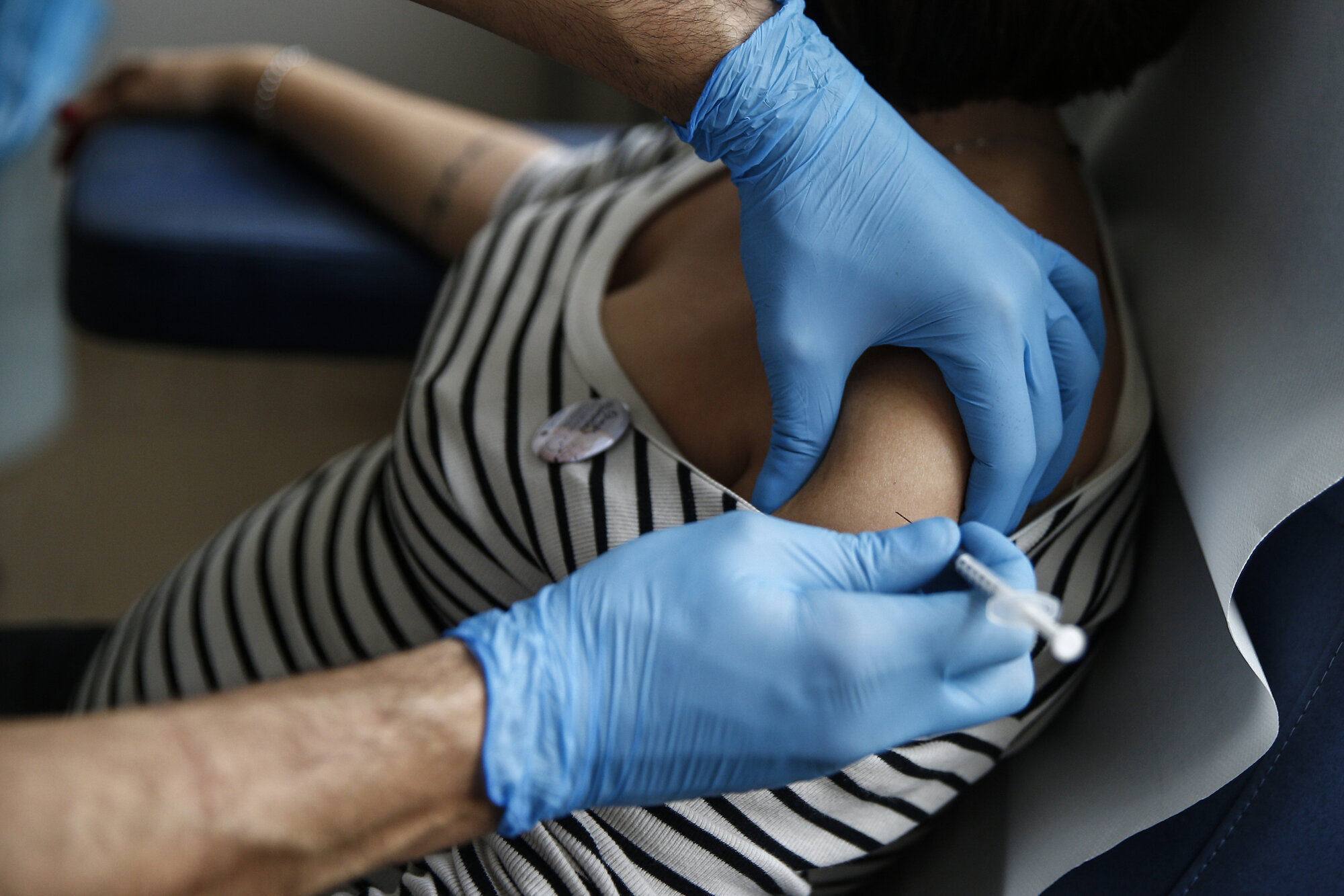 Bildet viser en gravid kvinne som skal til å få en koronavaksine.