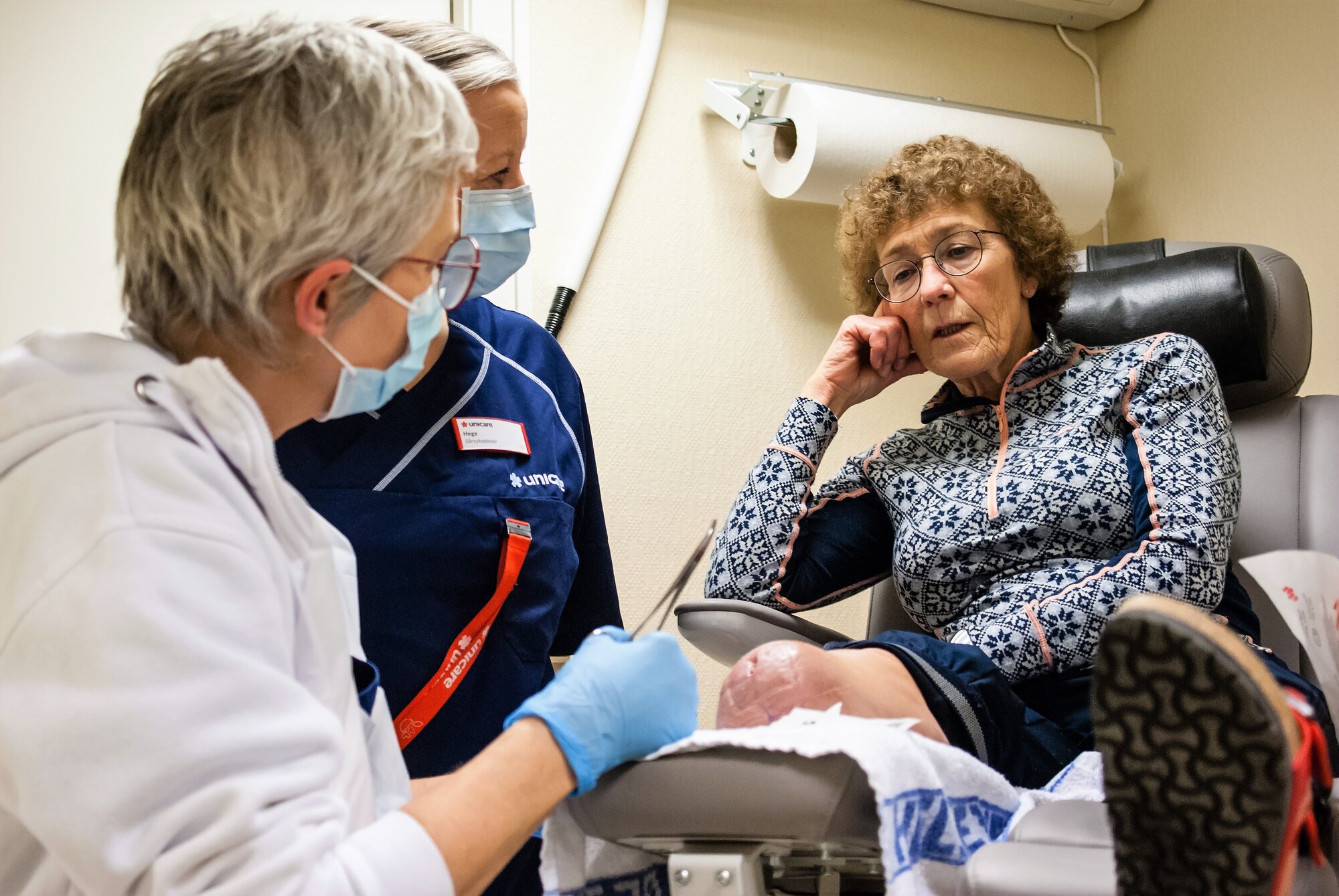 Oppfølging av pasientenes diabetes er en annen viktig oppgave for sykepleierne på Bakke. I tillegg administrerer de medisiner, koordinerer oppfølging med andre aktører, som hjemmetjeneste, sykehus og organisasjoner som Momentum og Landsforeningen for amputerte.