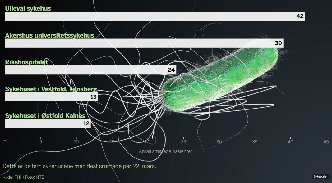 Totalt 239 pasienter er rammet, de fleste er i Helse Sør-Øst. I denne regionen er bakterien påvist ved 19 sykehus.