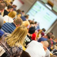 Studenter ved Høyskolen Diakonova i Oslo. Gerd Sylvi Sellevold underviser i ernæring.