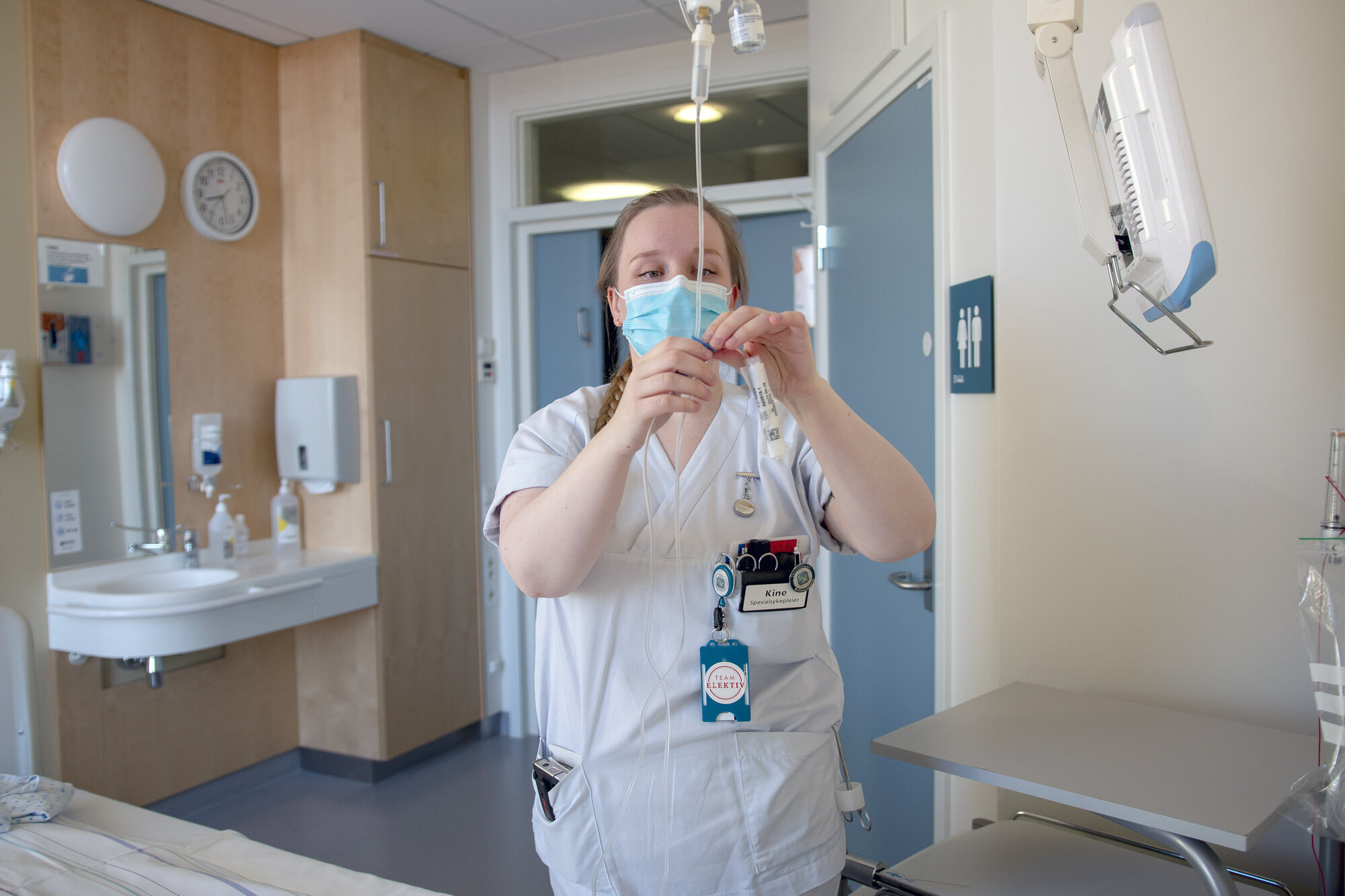 – Det føles veldig meningsfullt å gjøre en forskjell ved sengekanten til pasienten, sier Kine Berglund, spesialsykepleier på sengepost.