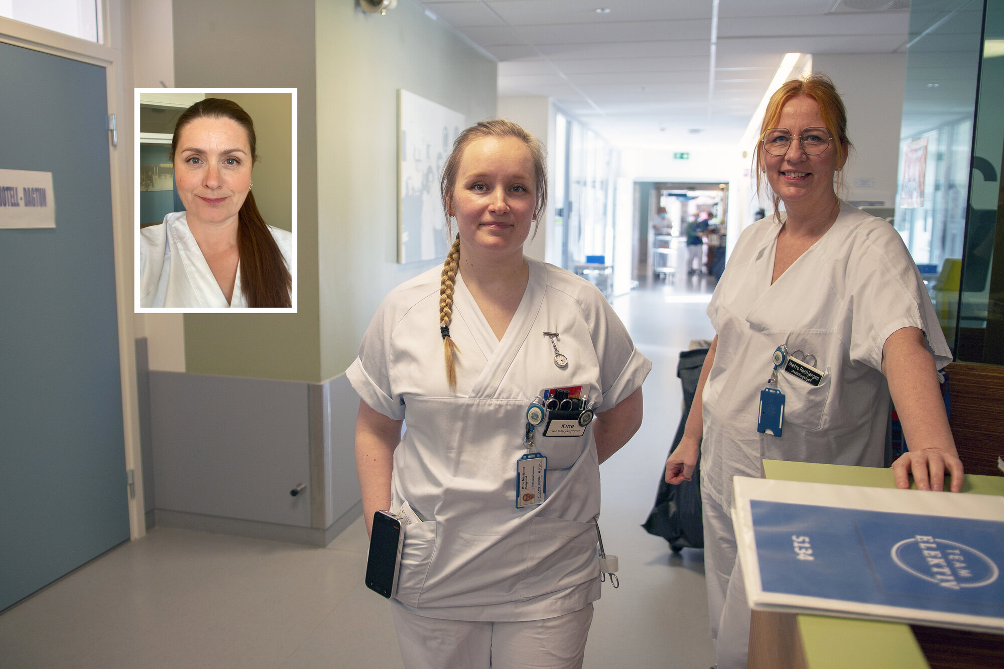 Kine Berglund jobber som spesialsykepleier på en ortopedisk sengepost, Cecilie Lund Murray er fagutviklingssykepleier og Mette Røsbjørgen er avdelingssjef.