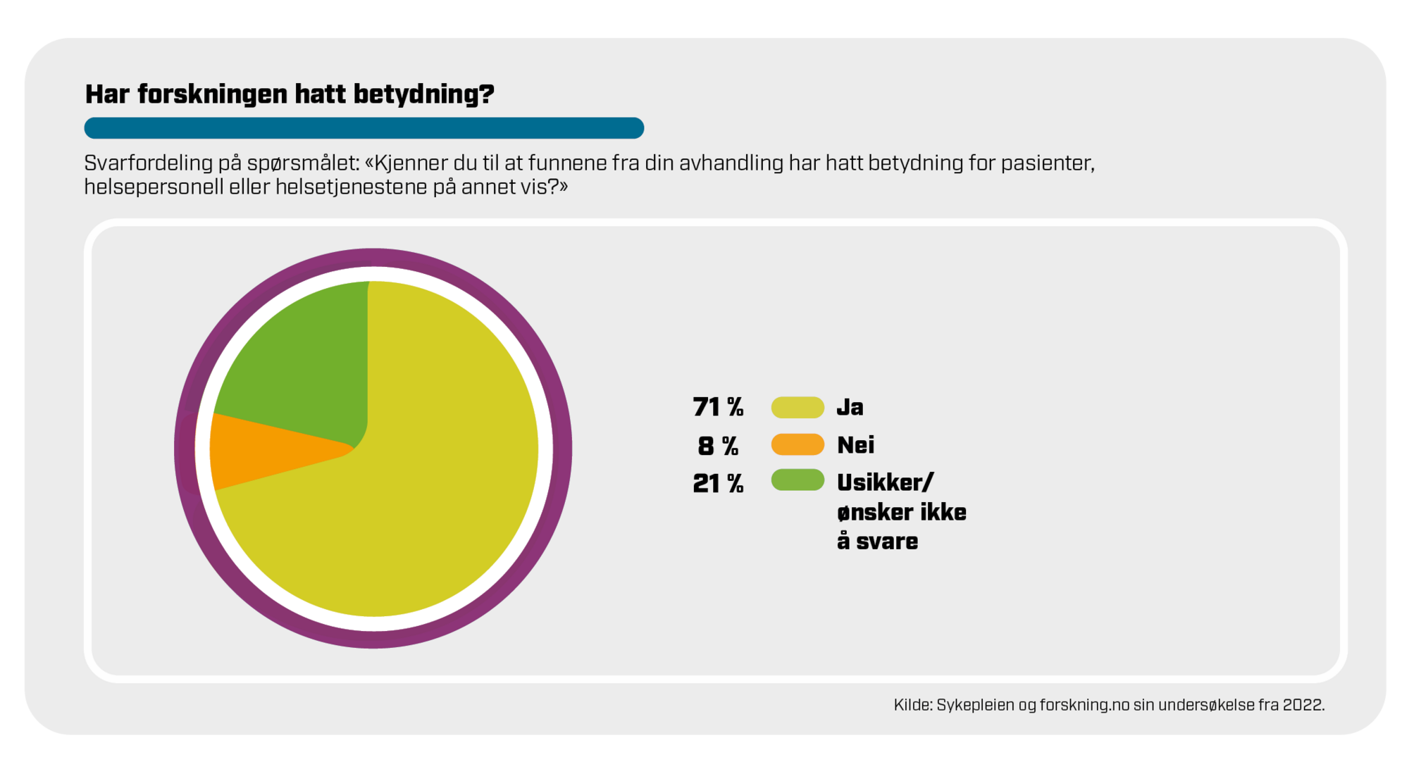 De fleste som har svart på undersøkelsen, rundt 7 av 10, mener at funnene fra deres doktorgradsavhandlinger har hatt betydning for pasienter, helsepersonell eller helsetjenestene på annet vis.