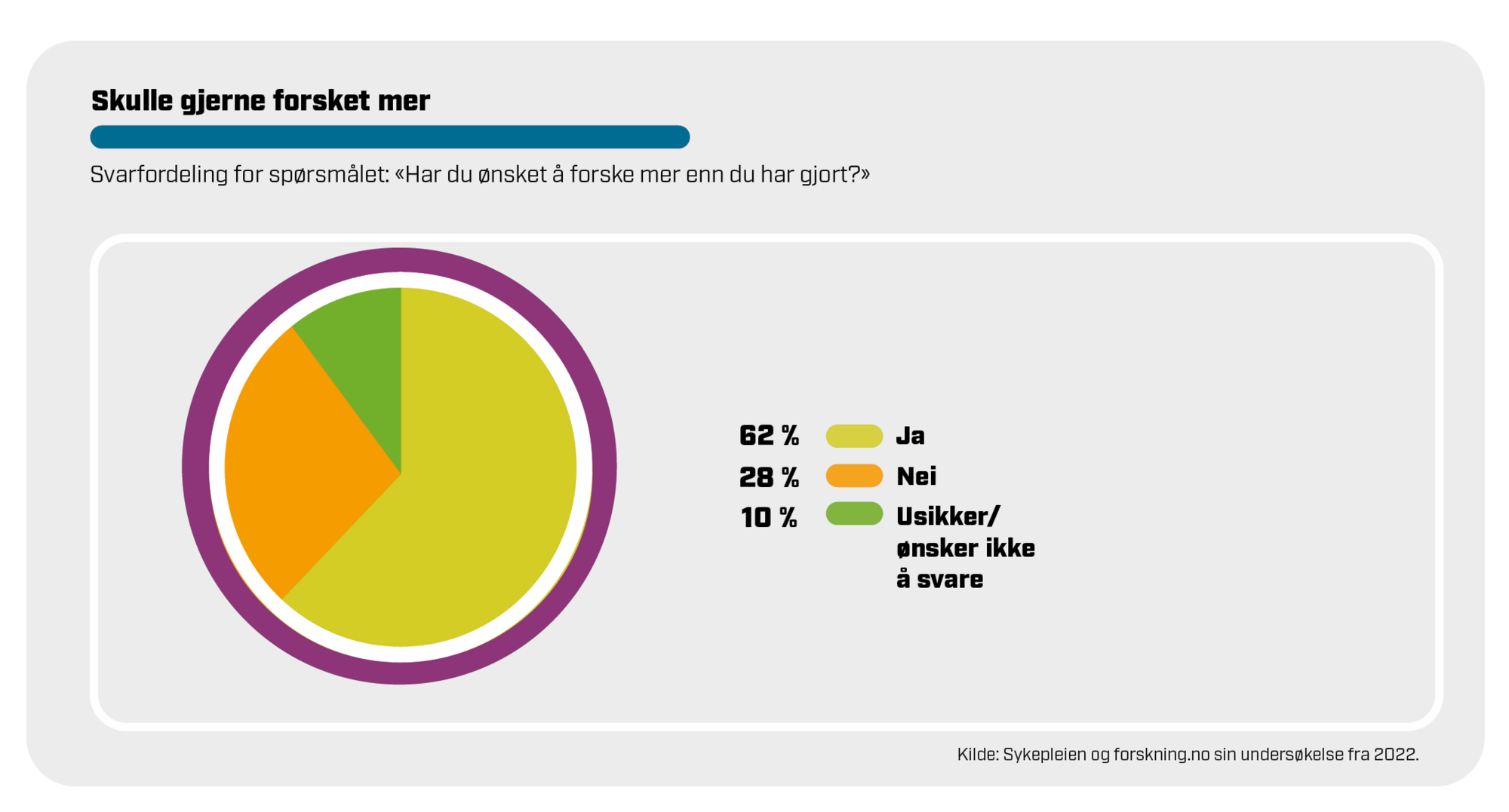 6 av 10 sykepleiere med doktorgrad oppgir at de gjerne skulle ha forsket mer enn de har gjort.