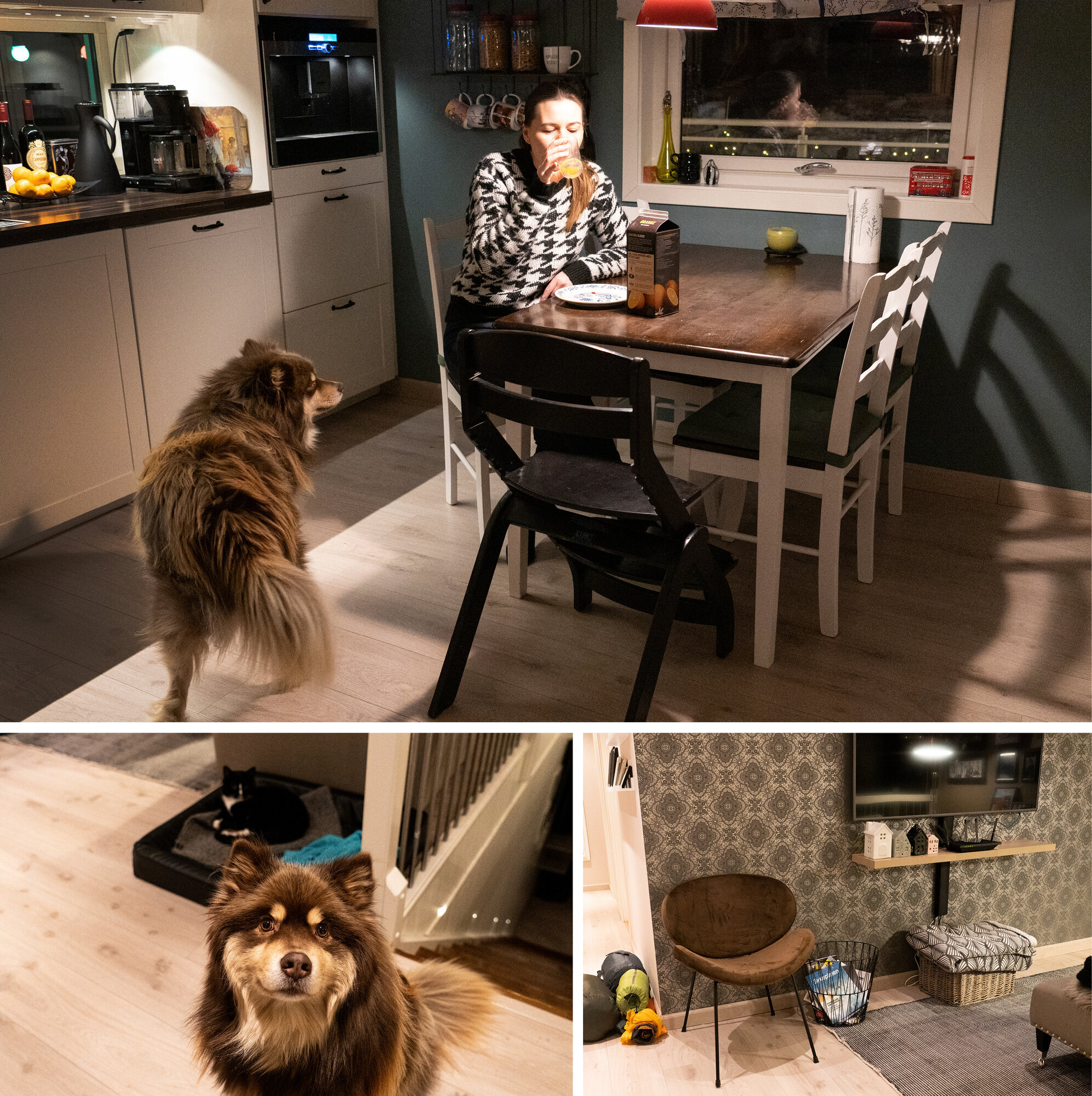 Hjemmesykepleier Hanne Lykkedrang sitter ved kjøkkenbordet og tar en god bit av brødskiva med syltetøy. Husets firbente gladgutt, Messi, stirrer forventningsfullt opp på matmor. Det kan jo være det vil tilfalle ham noen brødsmuler.