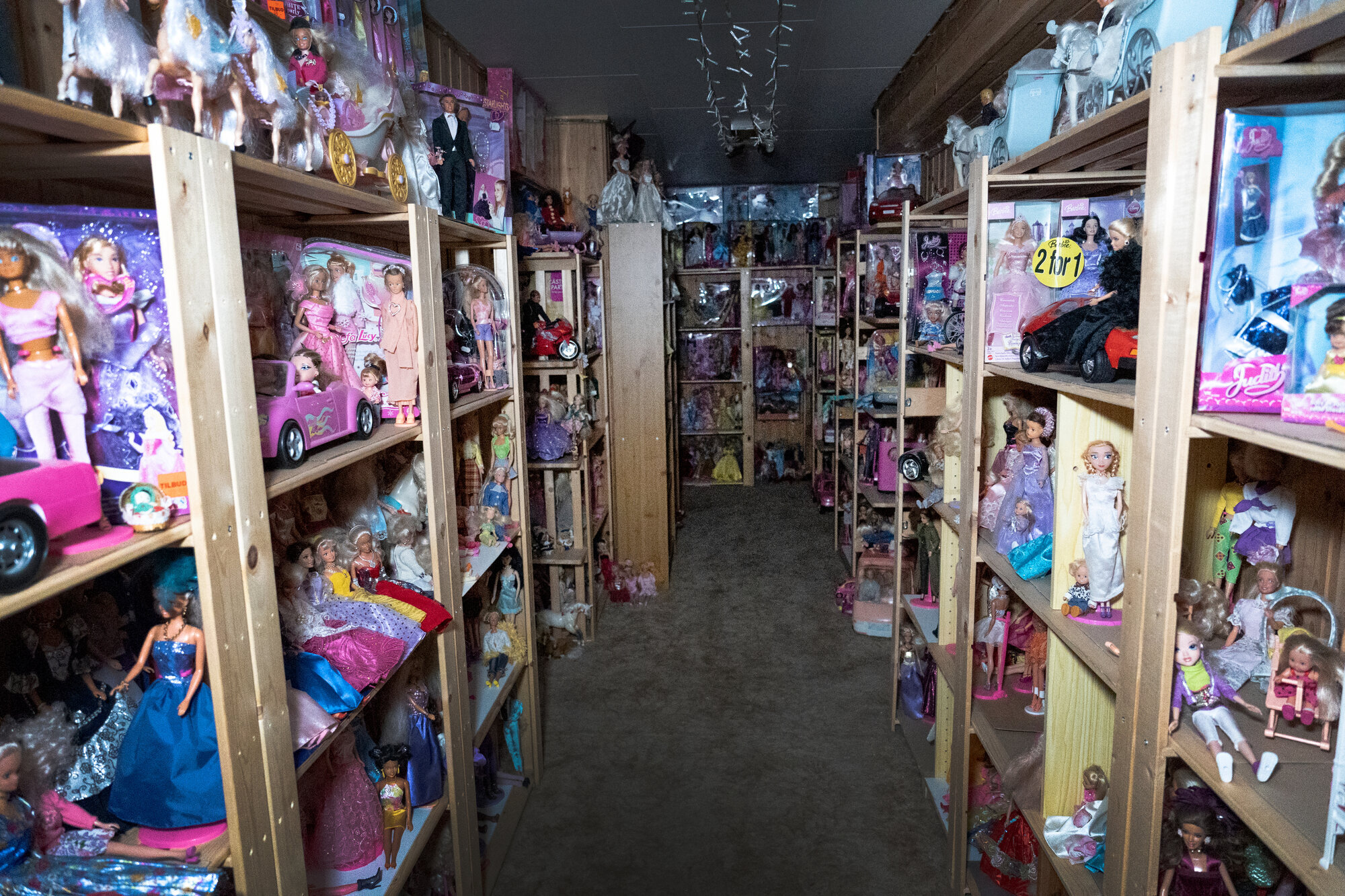 Ned en liten trapp åpenbares et syn som ville frydet alle Barbie-fans. Hylle på hylle fra gulv til tak er dekket med barbiedokker og barbieeffekter. Annbjørg opplyser at samlingen nå består av rundt 5000 barbiedokker.