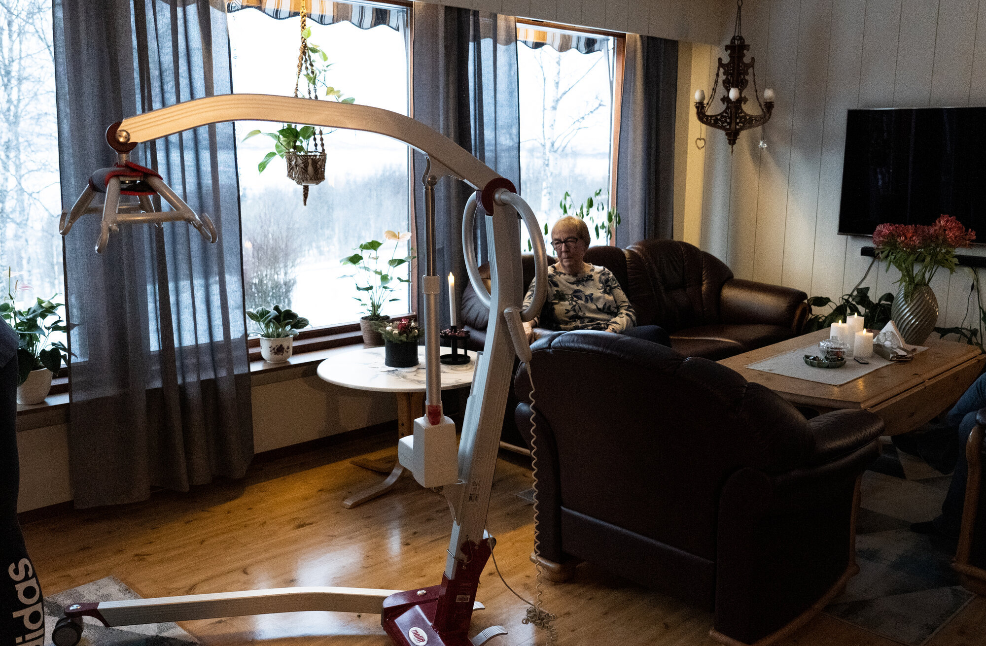 – Det har kun skjedd én gang, vi bor værhardt til. Men hjemmetjenesten er utrolig flinke. De kommer stort sett når de skal, sier hun, og fortsetter å rose alle i hjemmetjenesten som hjelper til.