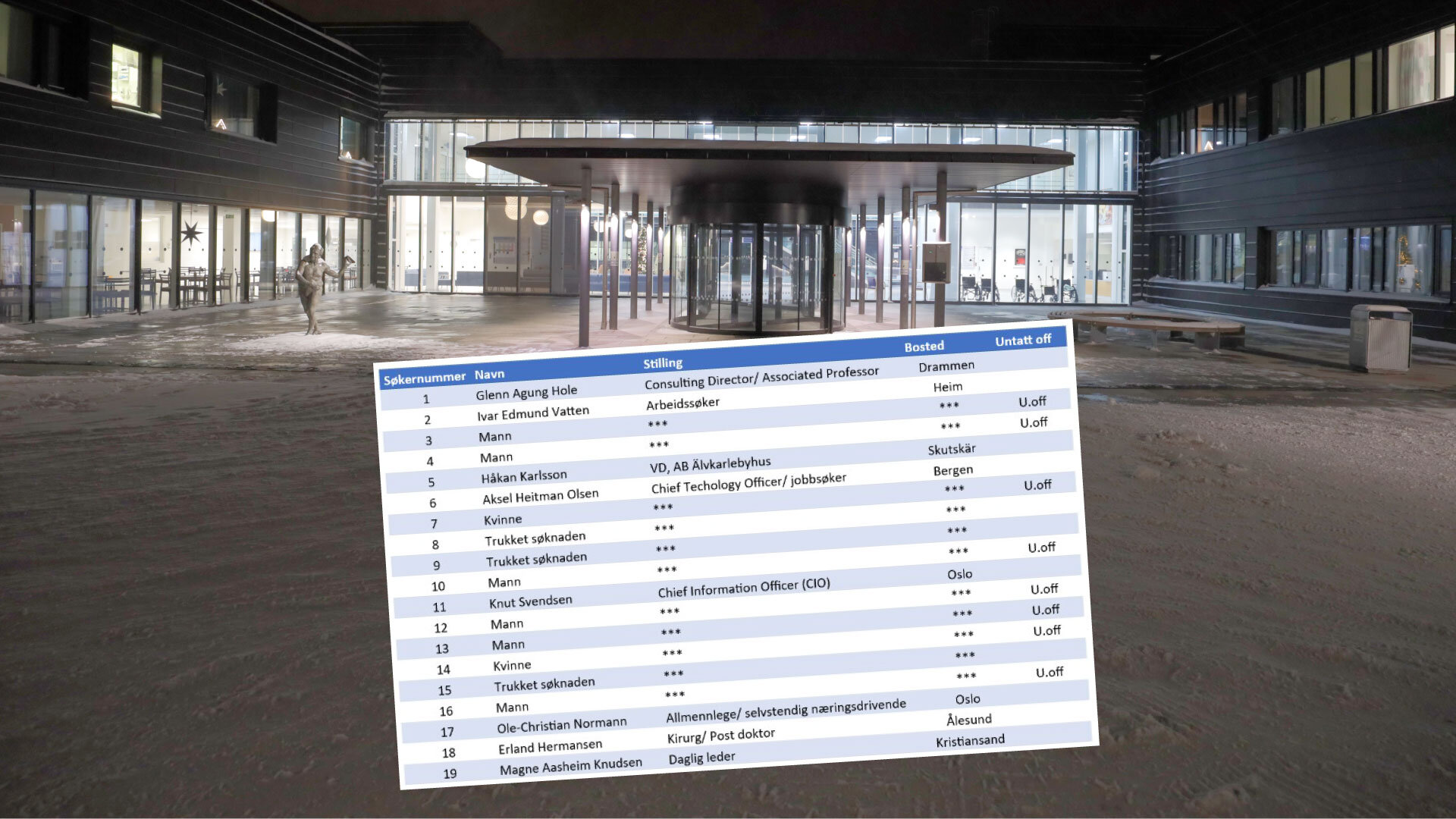 De to kvinnene som har søkt jobben, er anonyme på søkerlisten. Totalt var den på 19 personer. Tre av søkerne har trukket søknaden.