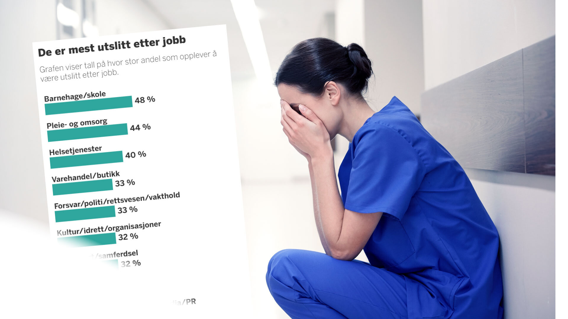 Hele 44 prosent av de spurte i pleie- og omsorgstjenesten og 40 prosent i helsetjenesten svarer at de er utslitt etter jobb, viser YS' arbeidsundersøkelse fra i år.