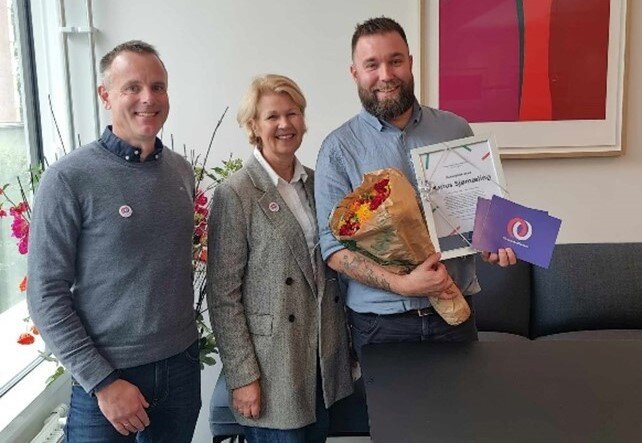 Marius Sjømæling takker for prisen, men presiserer at målet ikke er nådd.