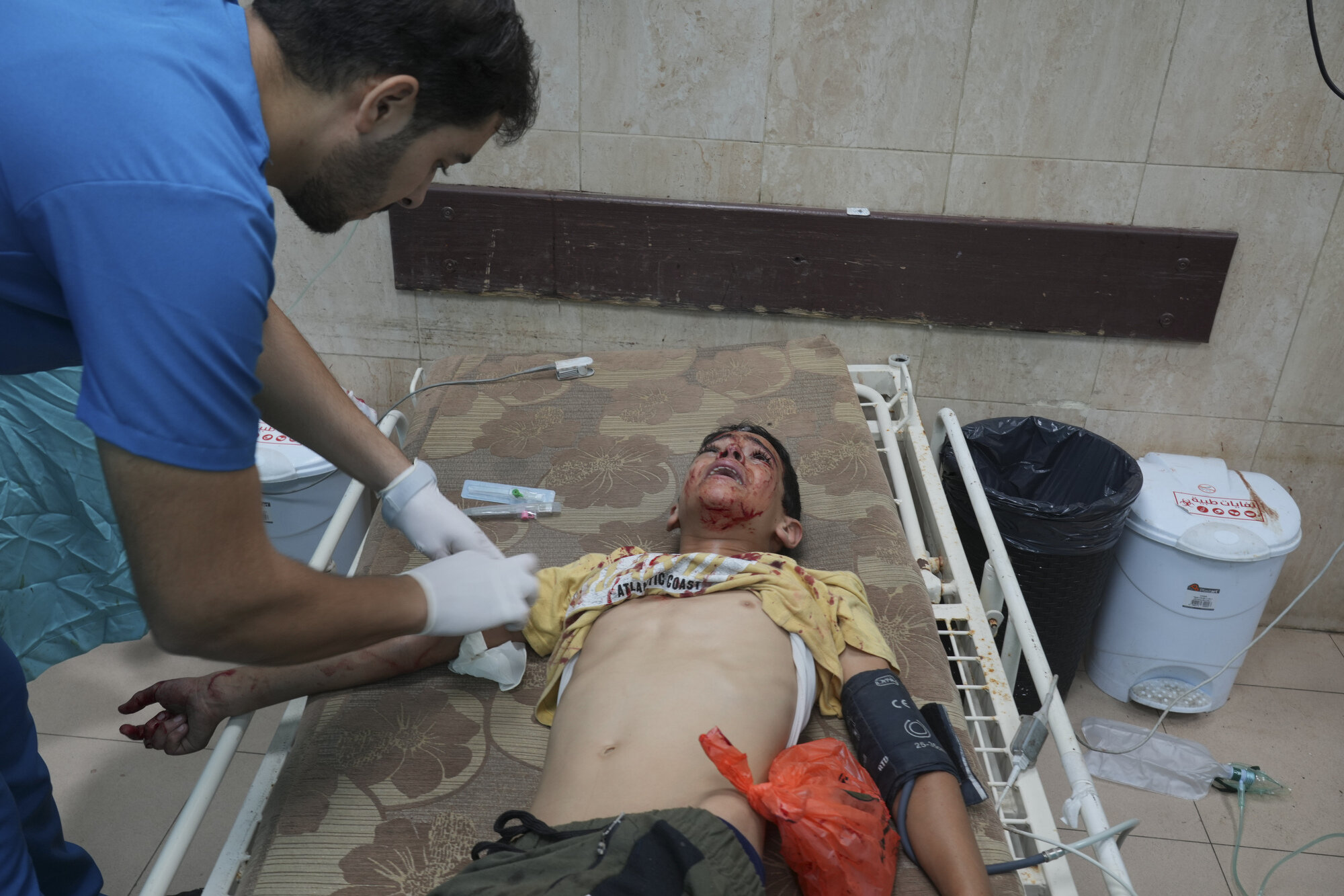 FÅR HJELP: En såret palestiner får legebehandling på et av sykehusene i Gaza som fortsatt er i drift.