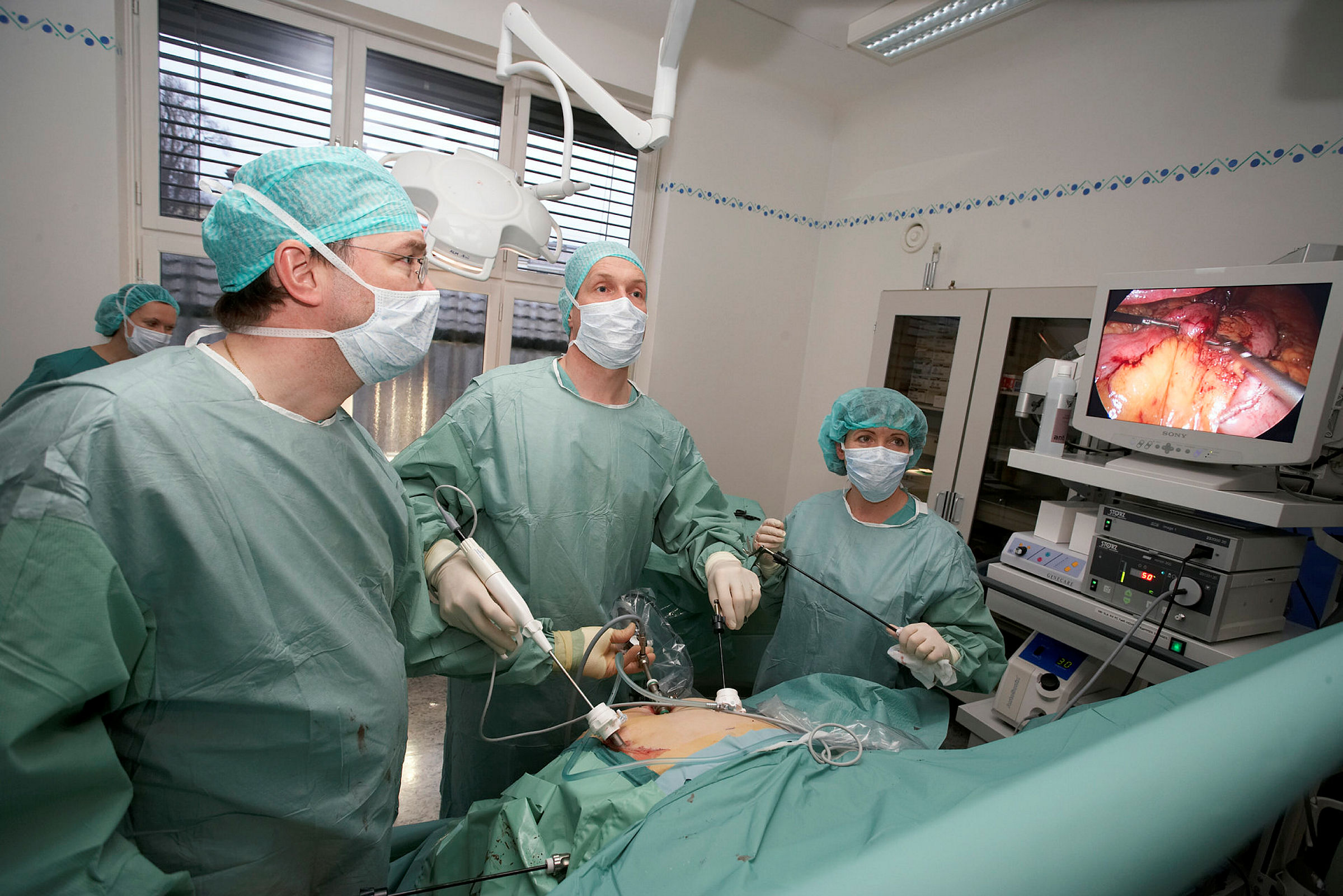 Fedmeoperasjon på Omniasykehuset, Røde Kors klinikk. Kirurg Hjørtur Gislason i midten.