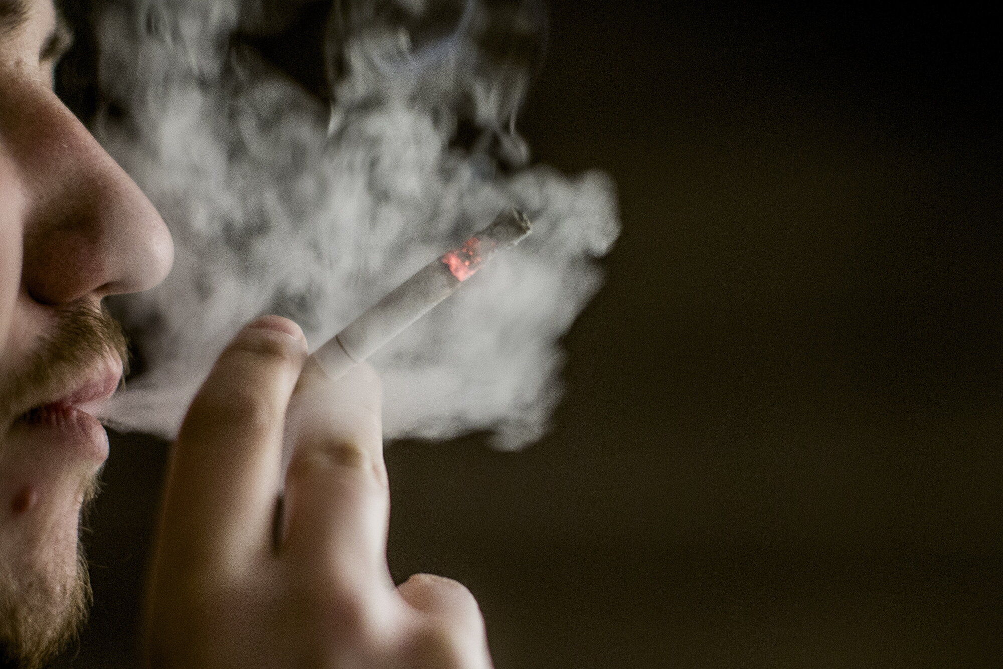 Bildet viser en mann som røyker en sigarett