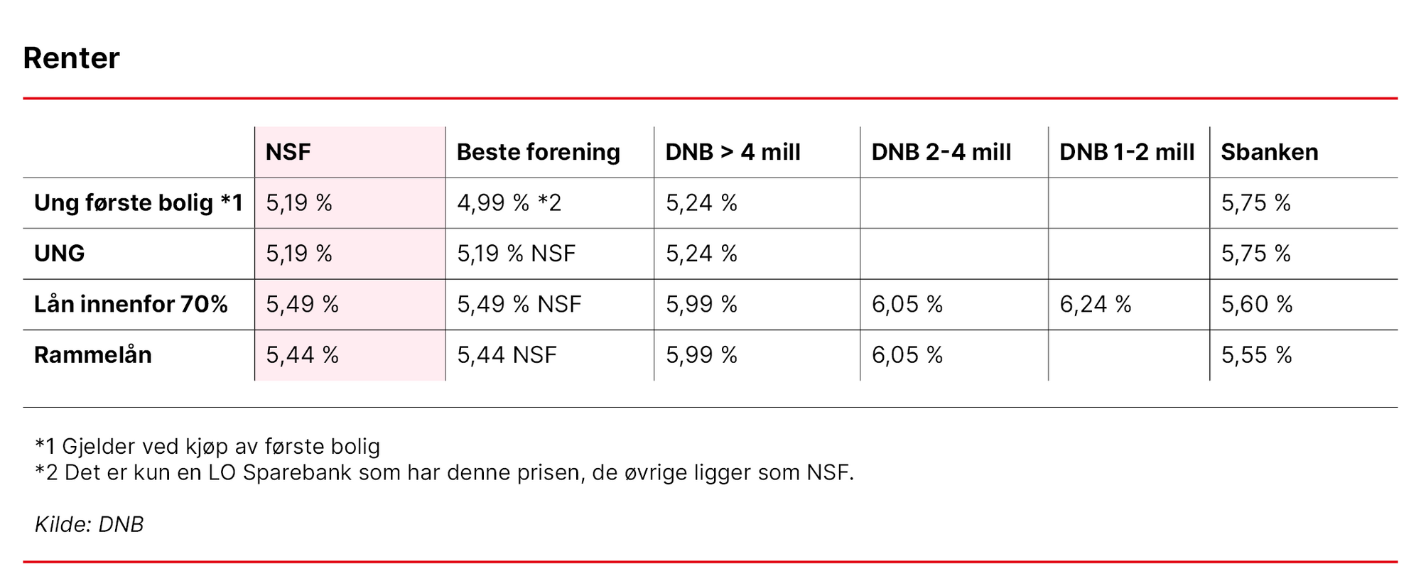 Se oversikt over renten og hva NSF sier om bankavtalen nederst i saken.