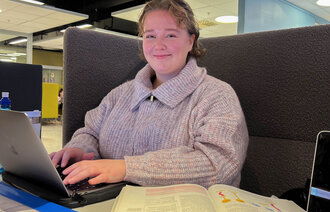 – Vi har ny eksamen på mandag, så vi sitter og leser til den nå, sier hun.