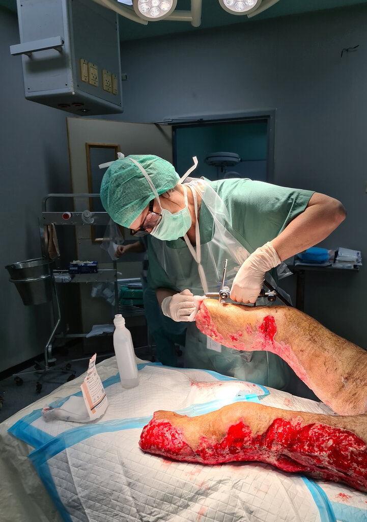 Det blir mange amputasjoner. En dag gjør de fire på rad. En formiddag kommer det to akutte pasienter rett fra gaten som de amputerer.