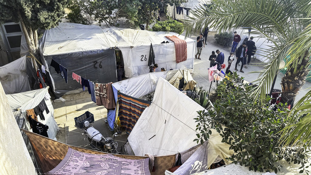 Tilbake til sykehusområdet noen kilometer inn på Gazastripen: I håp om å unngå bombene har 25 000 palestinere slått seg ned der.