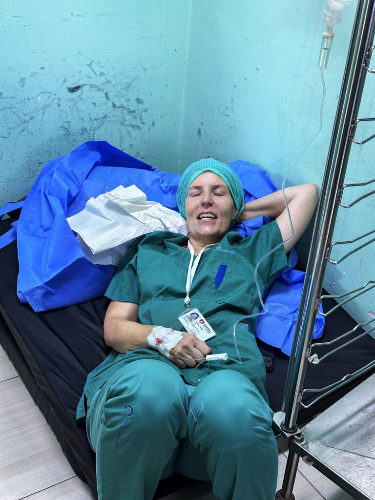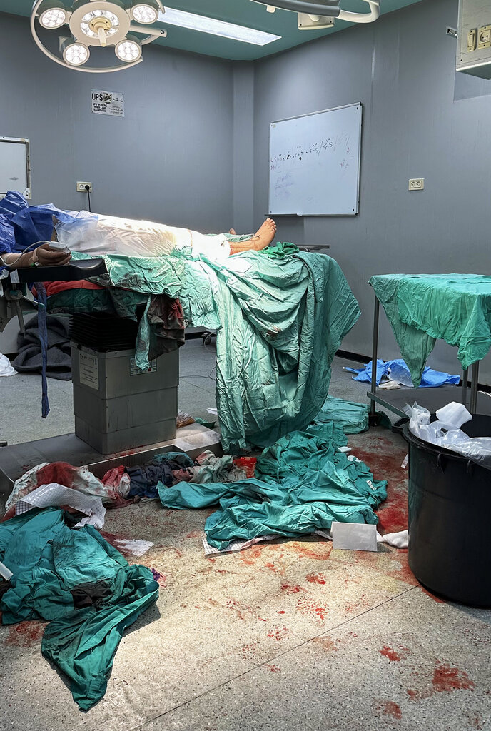 Inne på selve sykehuset passerer hun flyktningene som har slått seg ned i korridorene og på trappeavsatsene. Operasjonsstuen er i andre etasje.