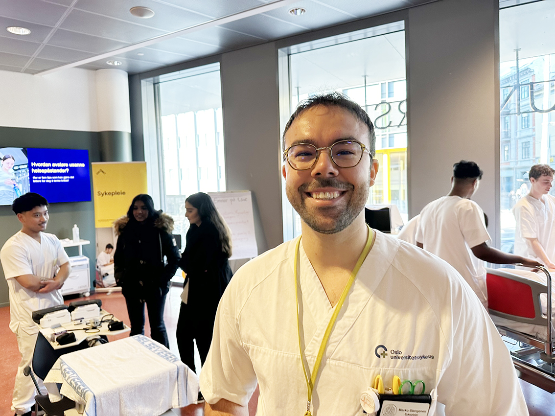 Sykepleielektor Marko Stojiljkovic kan skryte av den høyeste andelen av mannlige sykepleiestudenter i landet. – Vi ligger på omtrent 16 prosent, sier han. Om ti år tror han tallet er 50 prosent.
