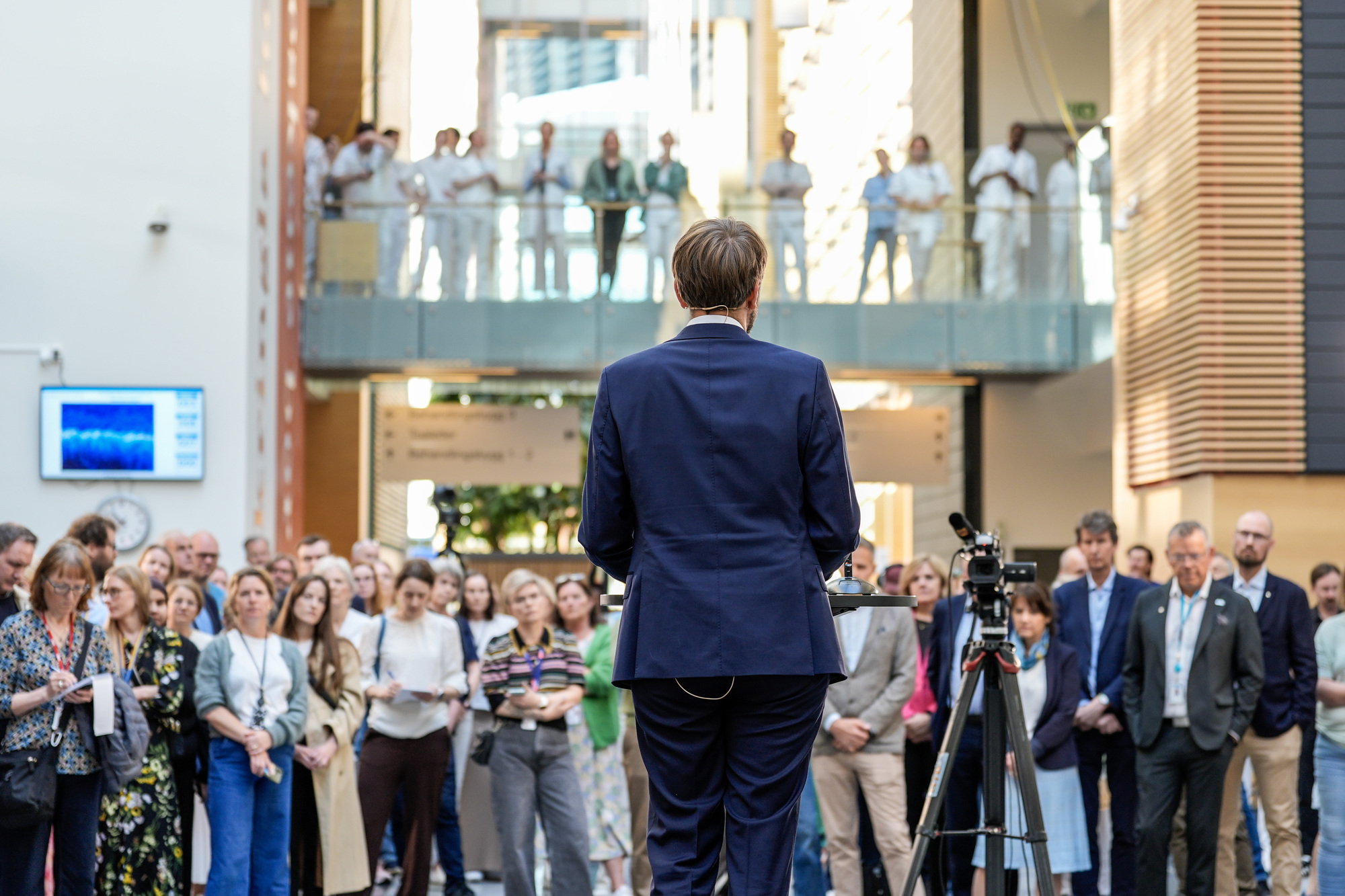 – Derfor er jeg glad for at jeg kan stå sammen med arbeidstakerorganisasjoner, arbeidsgiverorganisasjoner og helseforetakene og presentere ventetidsløftet. Ventetidene skal markant ned, sier Vestre.