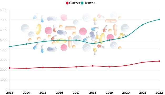 Ifølge statistikken er det flest jenter som bruker antidepressiver i Norge.