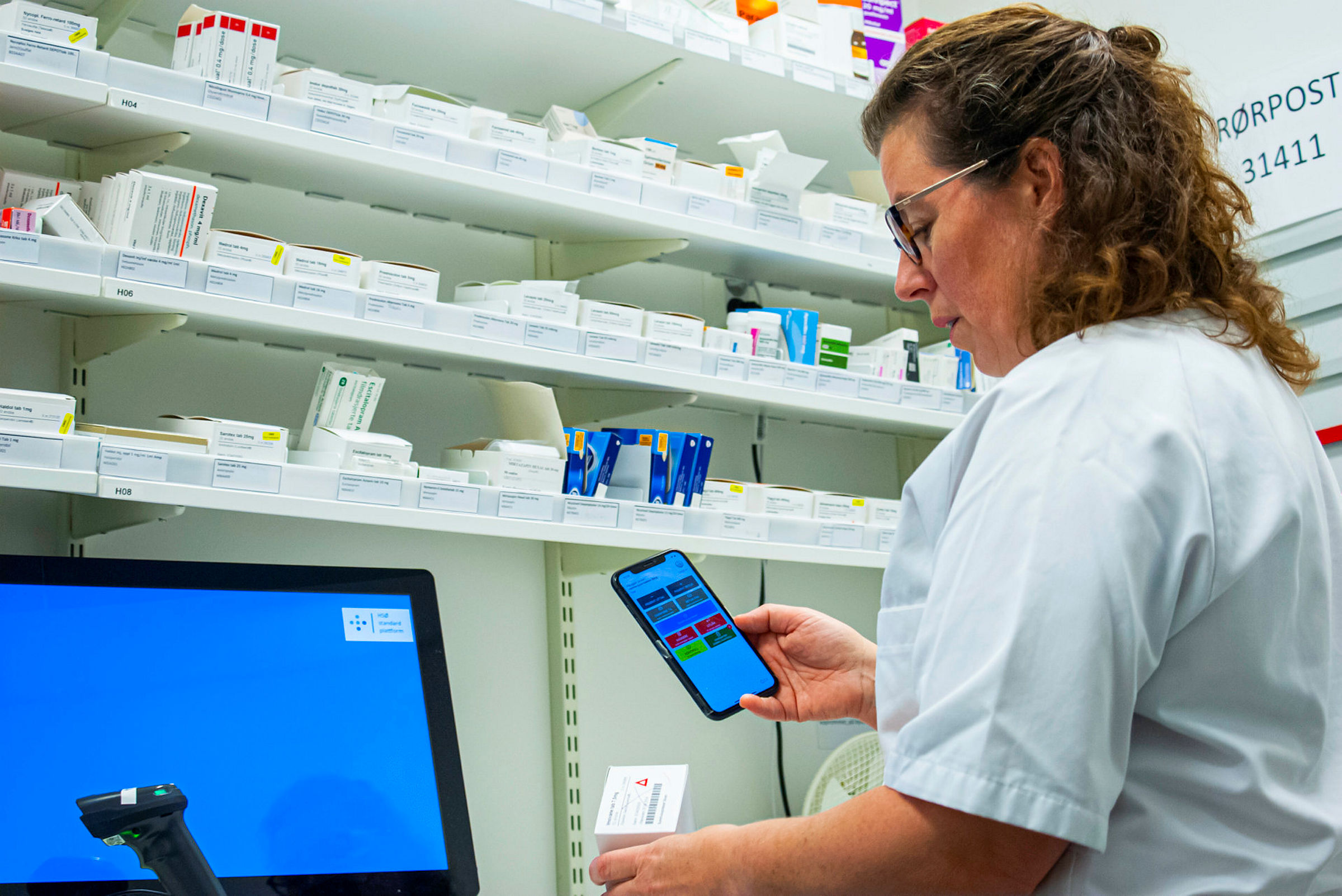 Tæpping, skanning og koder brukes for sikker autentisering av preparater, ansatte og pasienter. Utregning av restbeholdning og bruk gjøres automatisk.