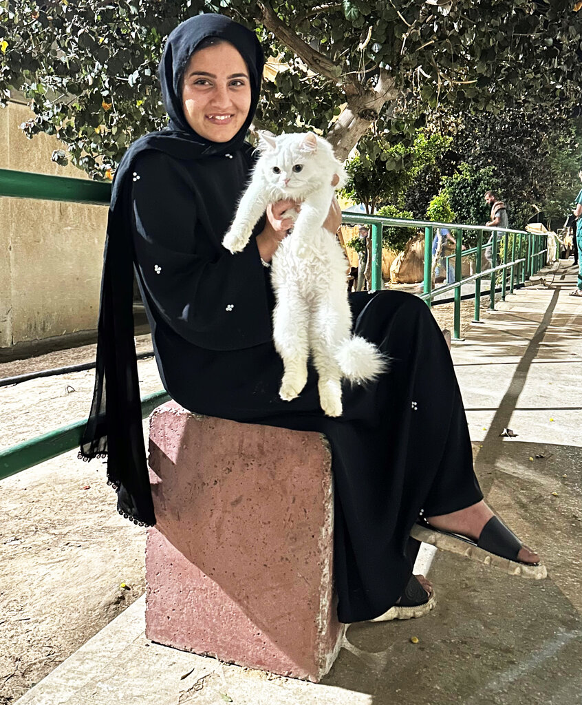 KJÆLEDYR: Katten ble med da eierne ble fordrevet. Hilde Vollan traff dem på området utenfor Det europeiske sykehuset, der familien hadde slått seg ned etter flukt.