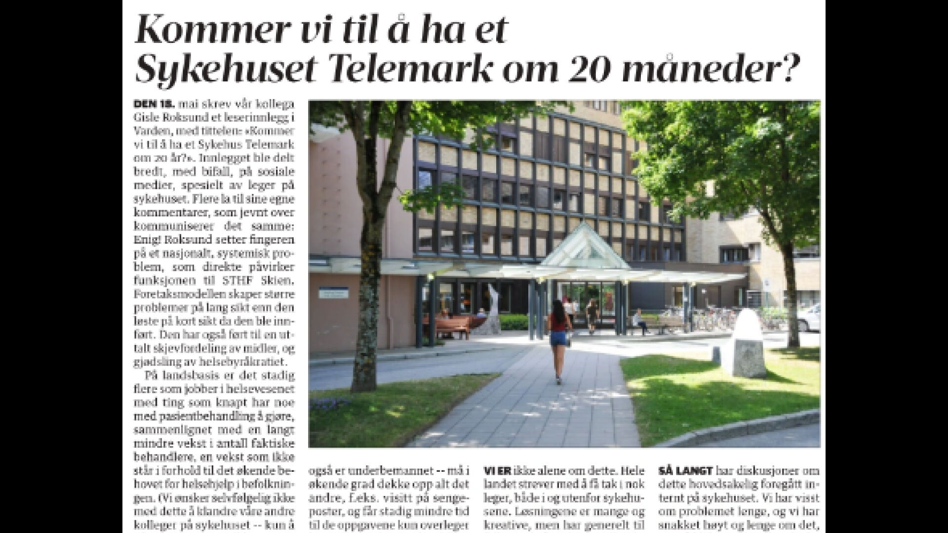 – Vi støtter de ansattes bekymring om lange ventelister og høyt arbeidspress, sa foretakstillitsvalgt for Norsk Sykepleierforbund (NSF), Janne Guldbjørnsen, til Telemark Arbeiderblad i juni.