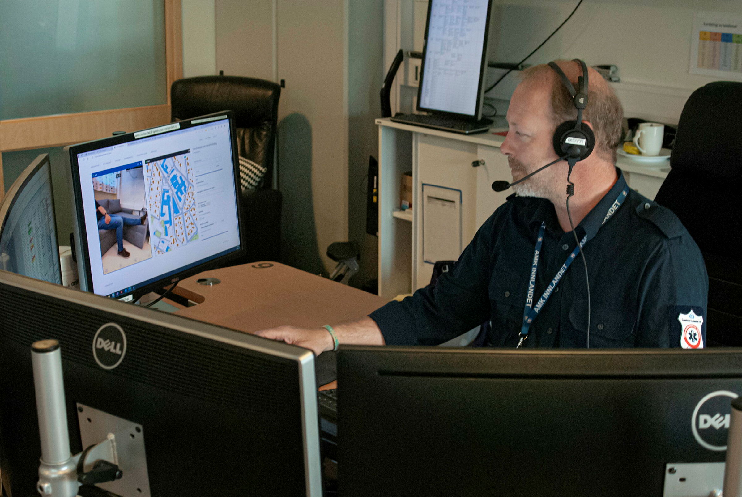 Sekunder senere dukker en eldre kvinne opp på den ene av AMK-operatørens fem skjermer.