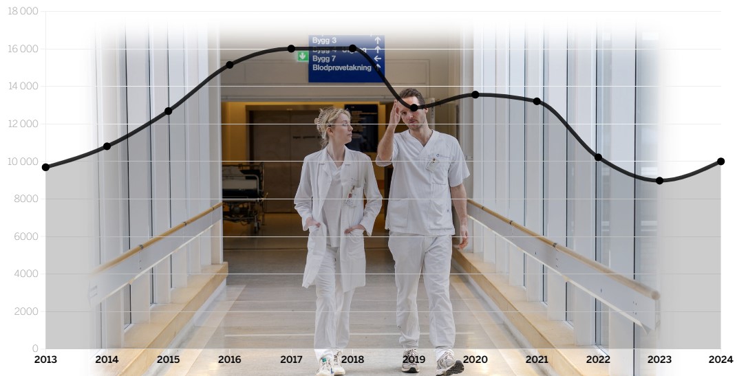 Det er en oppgang fra 8977 i 2023. En økning på 11,5 prosent.