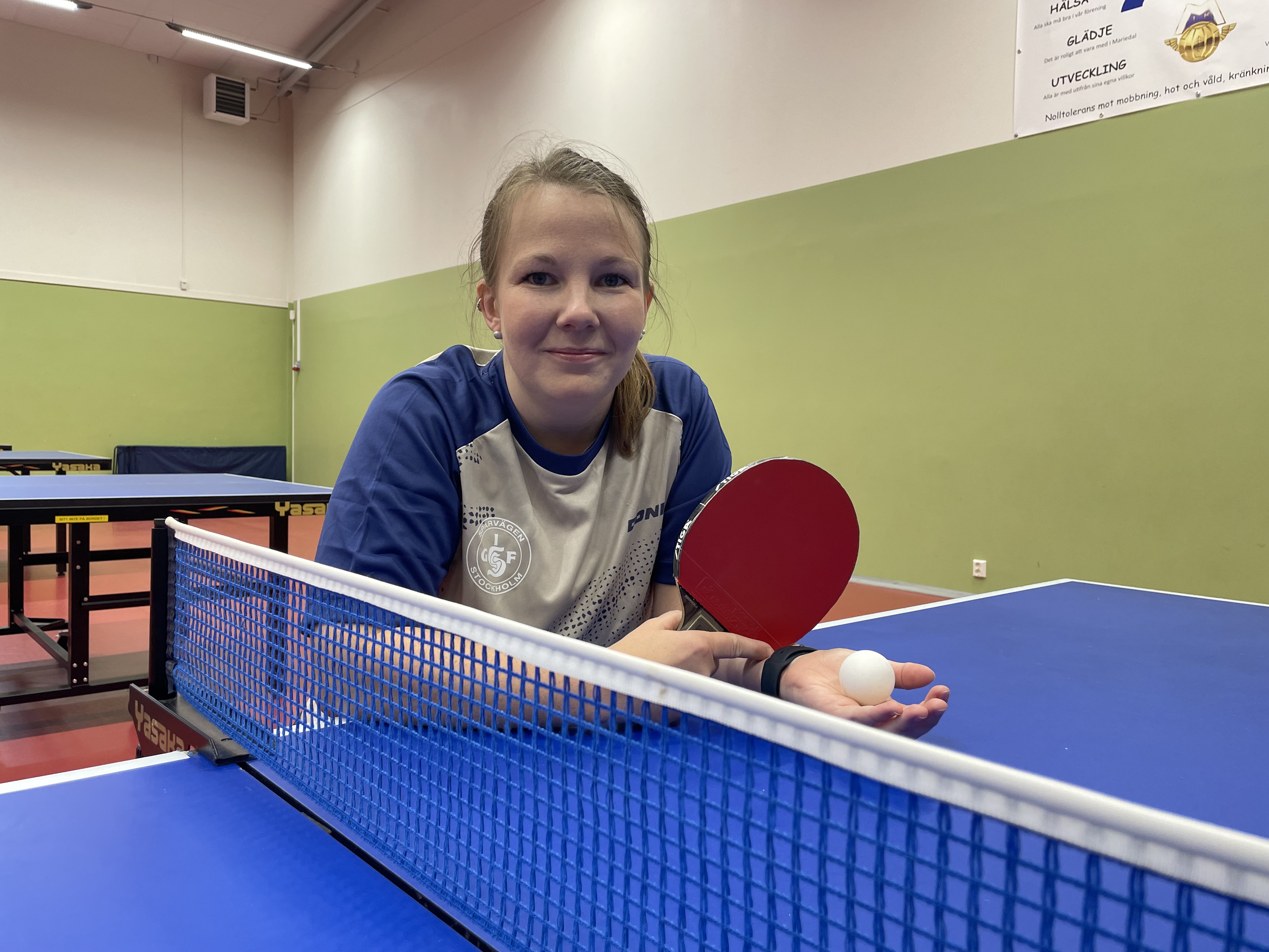 Sykepleier Karin Gill jobber for tiden fulltid med bordtennis. Hun har halv stilling i Pingis Parkinson og tilsvarende som distriktsutvikler for Nordvästra Götalands bordtennisförbund.