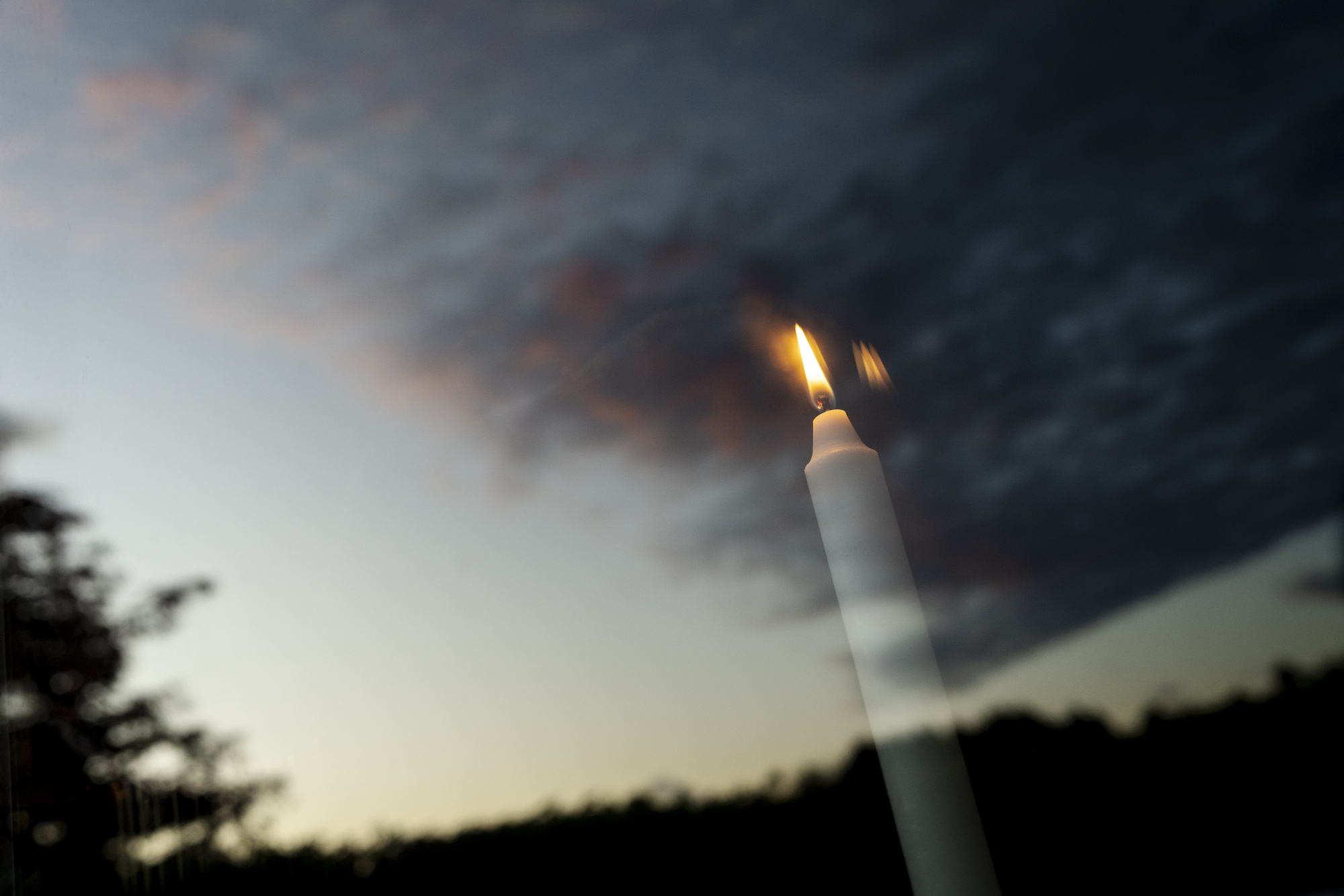 Bildet viser gjenskinnet av et tent lys i et vindu