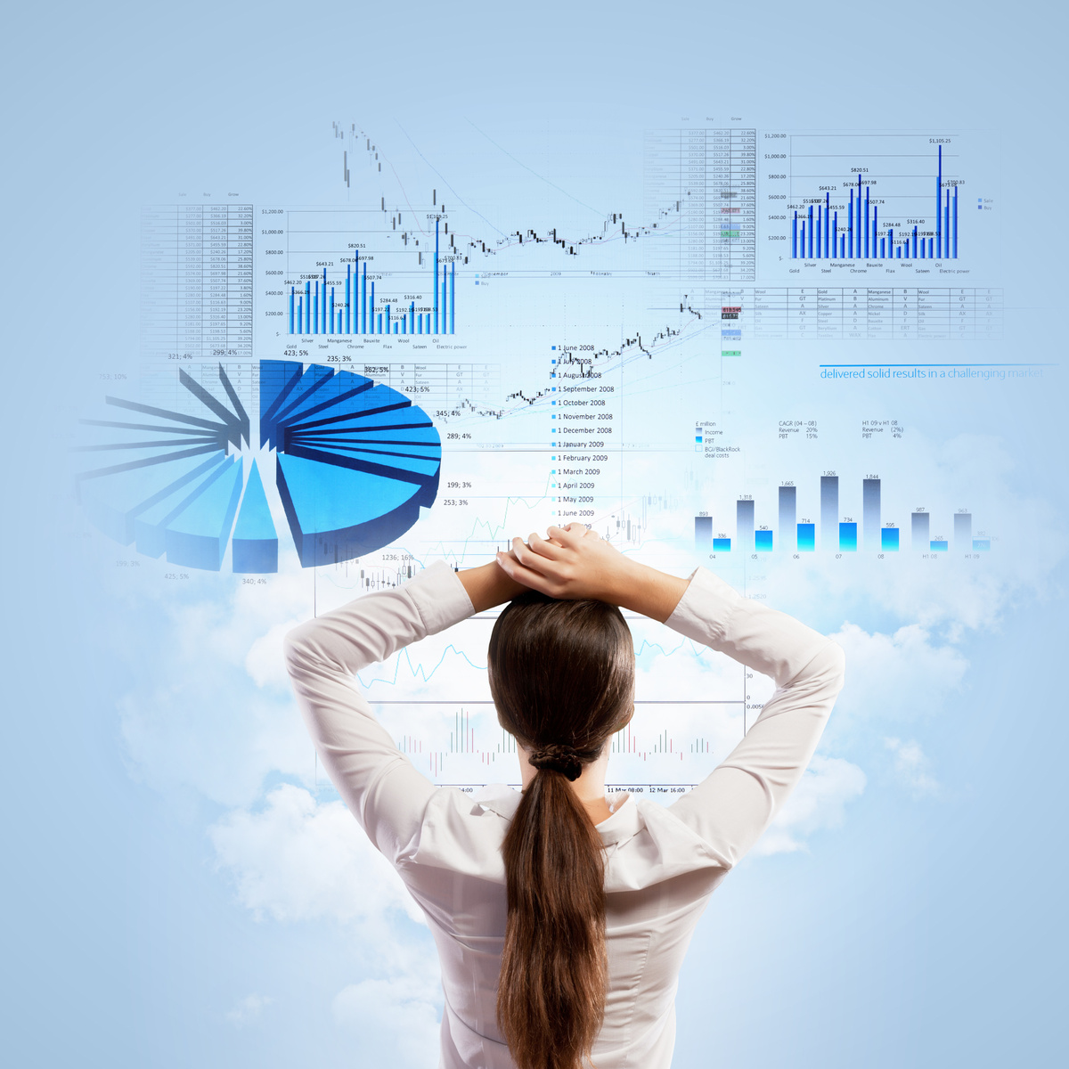 Bilde viser en kvinne som kikker på animerte data