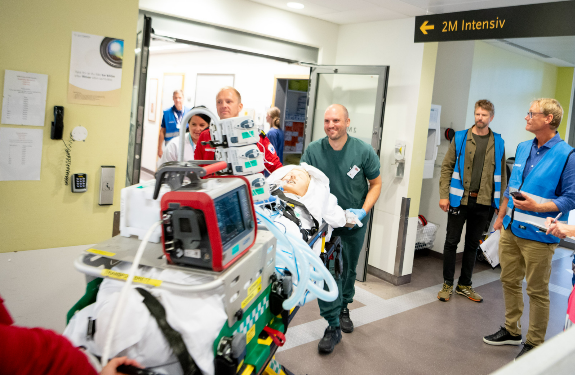 Onsdag 27. august gjennomførte sykehuset en omfattende øvelse med simulert pasientflytting. Scenariene inkluderte alt fra intensivpasienter til transport av kuvøse – og ble gjennomført med markører i stedet for faktiske pasienter.