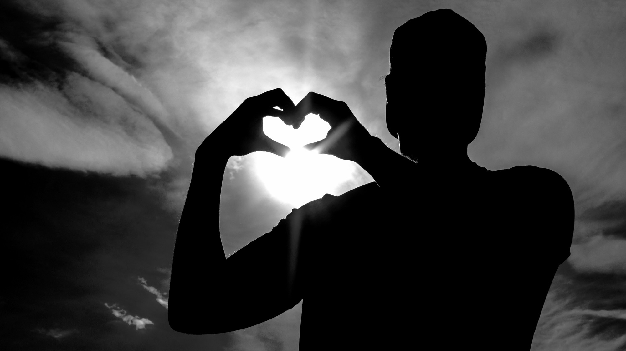 Bildet viser en mann som viser hjertesymbolet