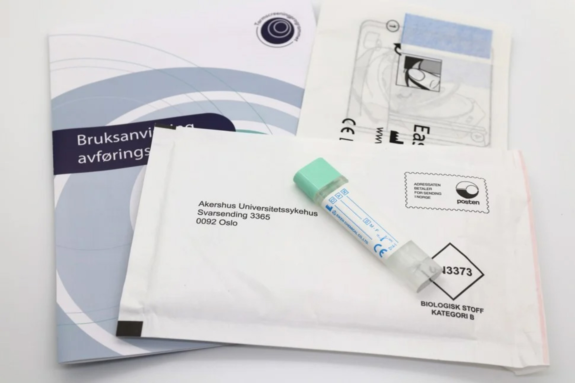 Bildet viser et prøvesett man får tilsendt i Tarmscreeningprogrammet.