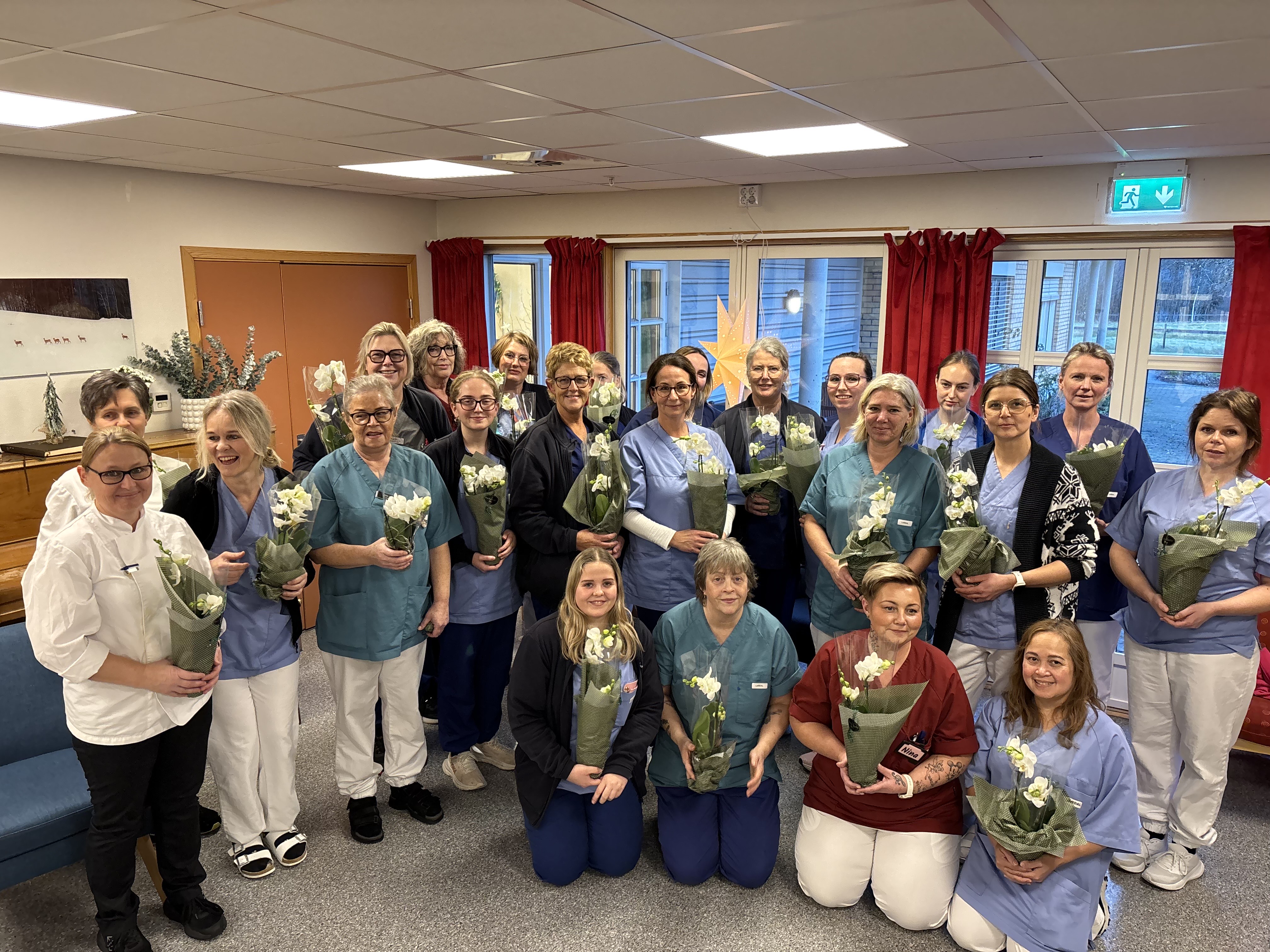 – Vi er 60 fast ansatte og 25 faste vikarer. Den første utdelingen skjedde i vaktskiftet fra dag til kveld på mandag. Ettersom det er turnusarbeid, går det nok en uke før alle har vært innom og fått sin orkidé.